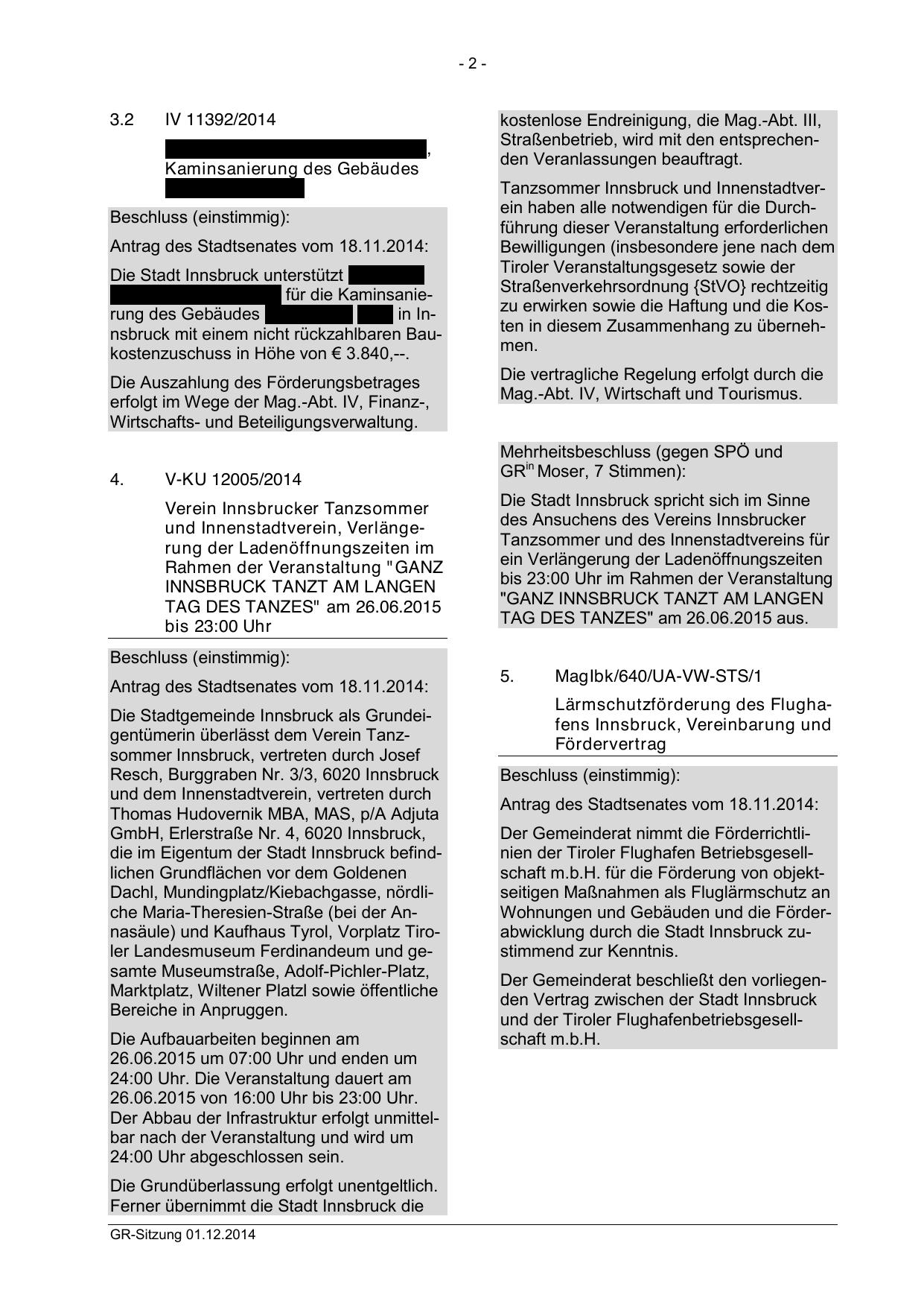 Antrag des Stadtsenates vom 18.11.2014: