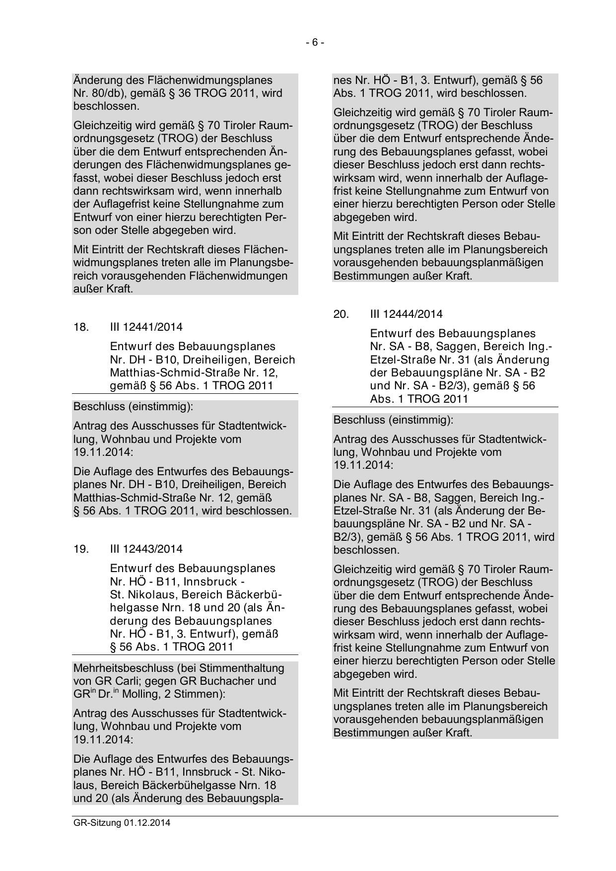 und 20 (als Änderung des BebauungsplaGR-Sitzung 01.12.2014