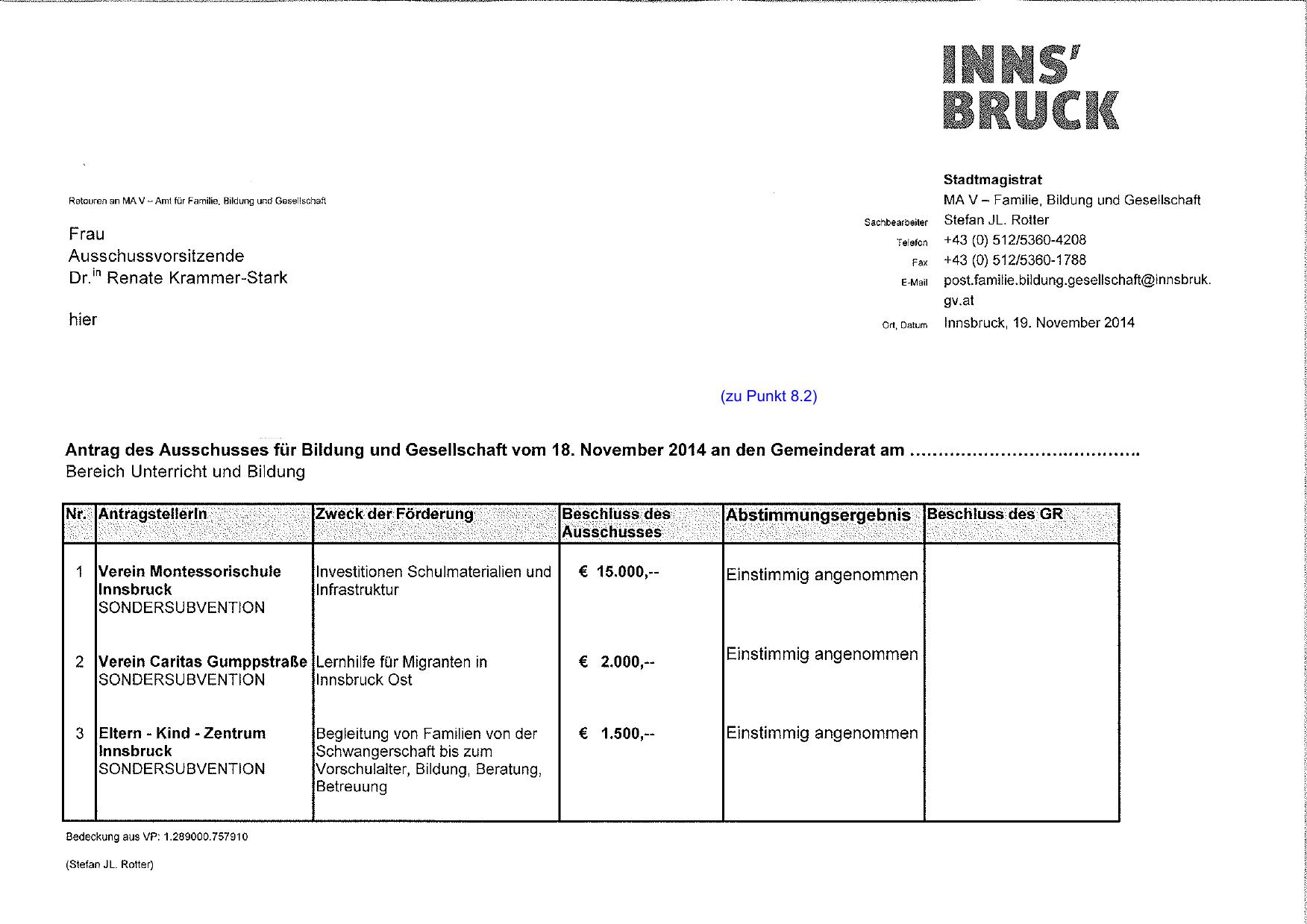 Retouren an MA V - Amt für Familie, Bildung und Gesellschaft