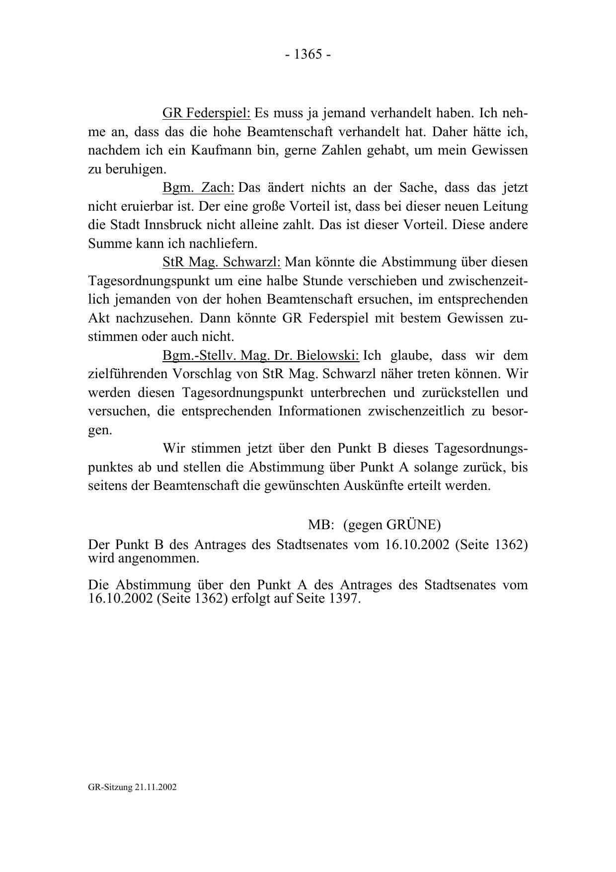 Der Punkt B des Antrages des Stadtsenates vom 16.10.2002 (Seite 1362)