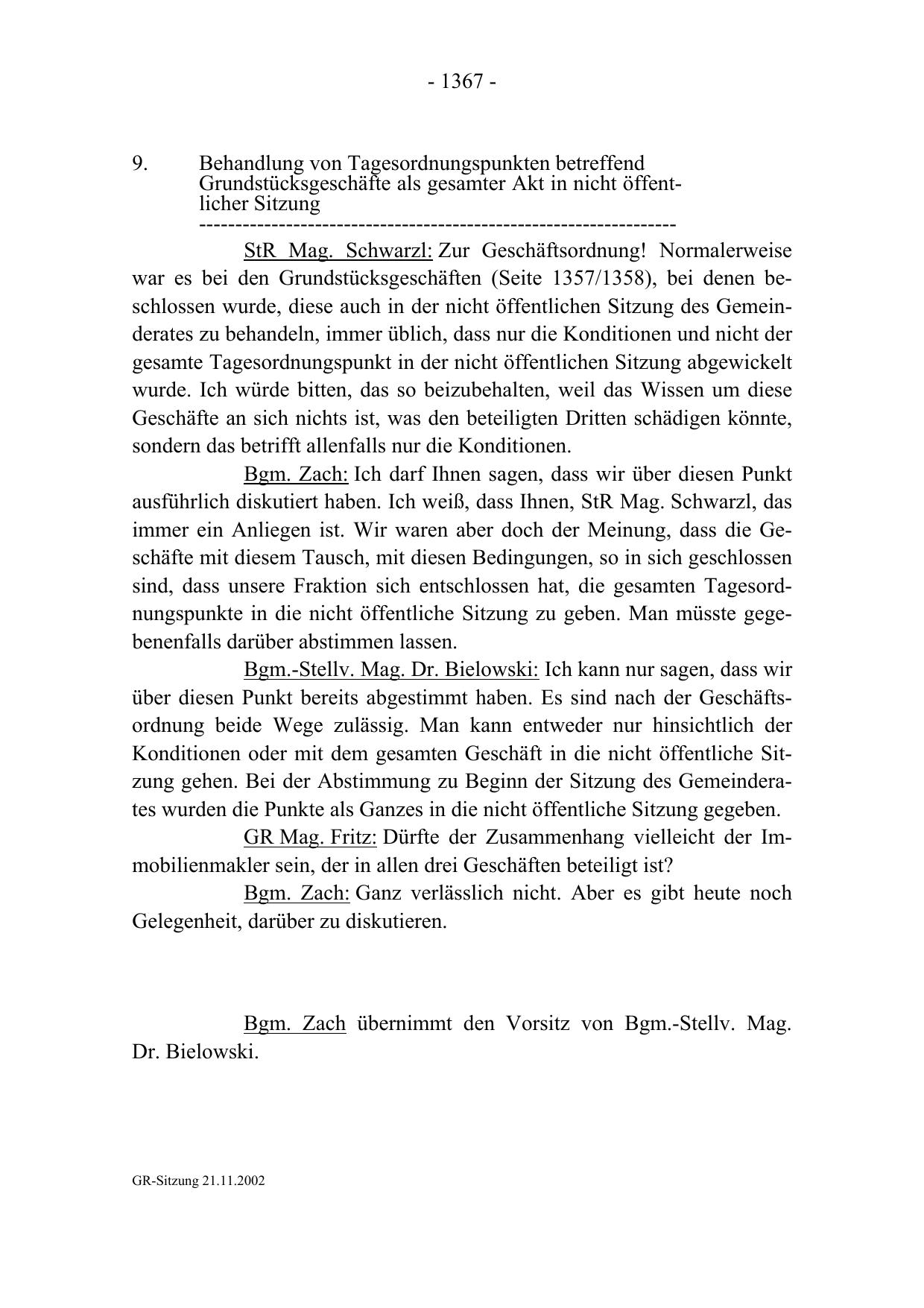war es bei den Grundstücksgeschäften (Seite 1357/1358), bei denen beschlossen wurde, diese auch in der nicht öffentlichen Sitzung des Gemeinderates zu behandeln, immer üblich, dass nur die Konditionen und nicht der