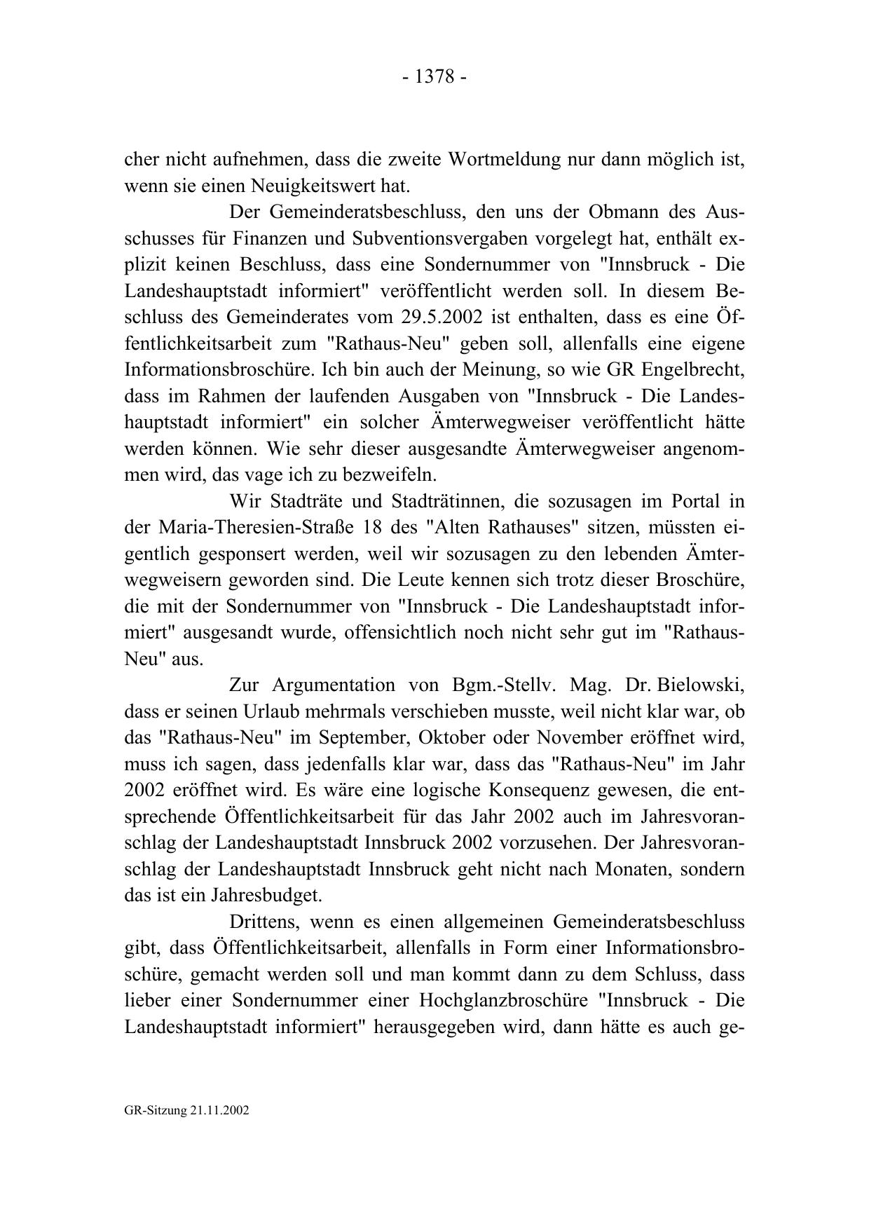 2002 eröffnet wird. Es wäre eine logische Konsequenz gewesen, die entsprechende Öffentlichkeitsarbeit für das Jahr 2002 auch im Jahresvoranschlag der Landeshauptstadt Innsbruck 2002 vorzusehen. Der Jahresvoranschlag der Landeshauptstadt Innsbruck geht nicht nach Monaten, sondern