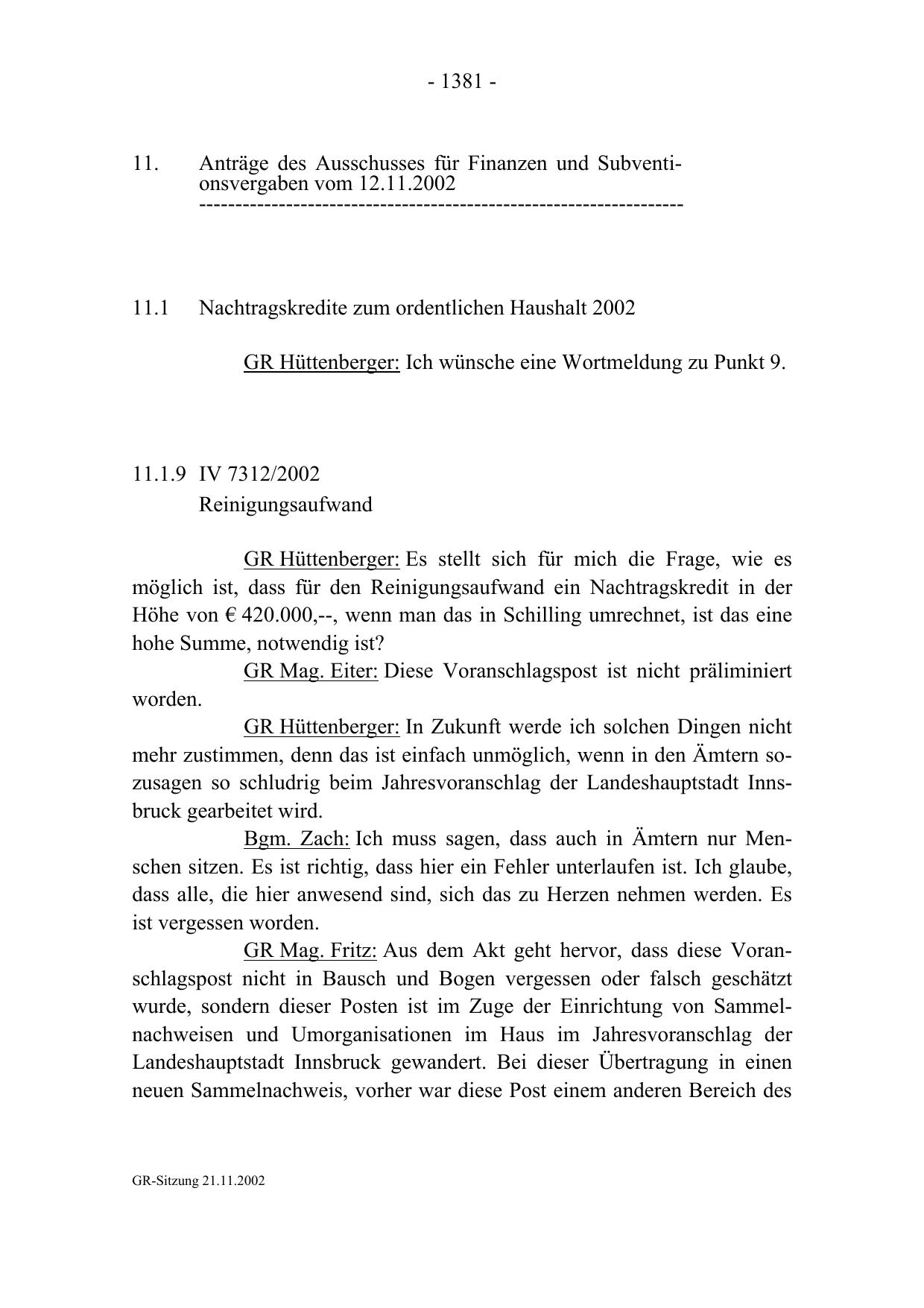 mehr zustimmen, denn das ist einfach unmöglich, wenn in den Ämtern sozusagen so schludrig beim Jahresvoranschlag der Landeshauptstadt Innsbruck gearbeitet wird.