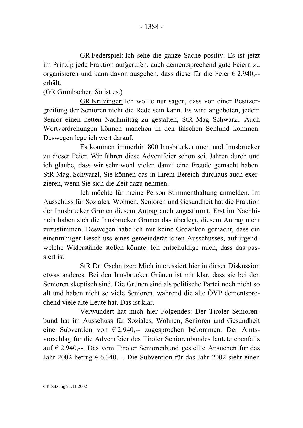 der Innsbrucker Grünen diesem Antrag auch zugestimmt. Erst im Nachhinein haben sich die Innsbrucker Grünen das überlegt, diesem Antrag nicht