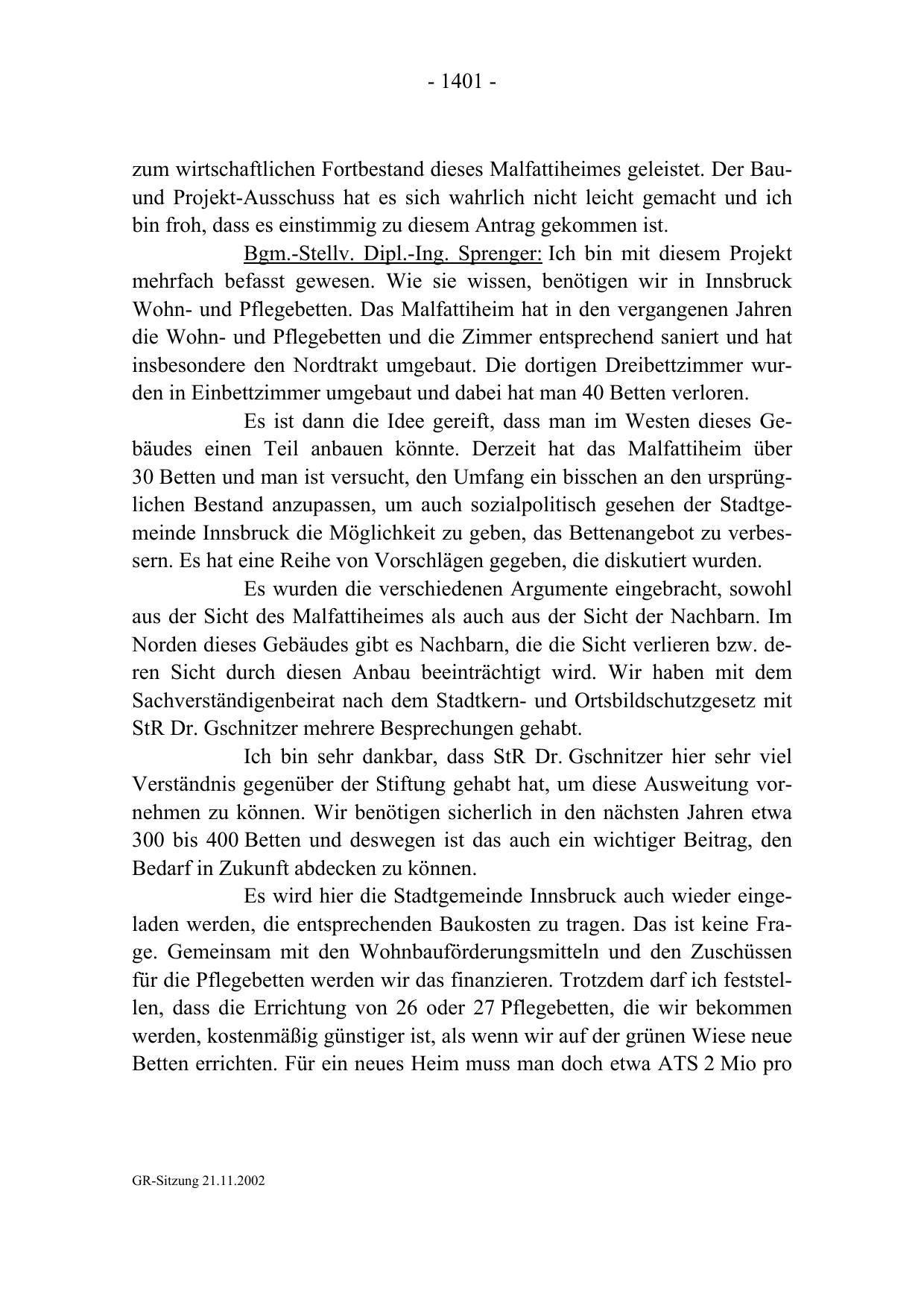 30 Betten und man ist versucht, den Umfang ein bisschen an den ursprünglichen Bestand anzupassen, um auch sozialpolitisch gesehen der Stadtgemeinde Innsbruck die Möglichkeit zu geben, das Bettenangebot zu verbessern. Es hat eine Reihe von Vorschlägen gegeben, die diskutiert wurden.