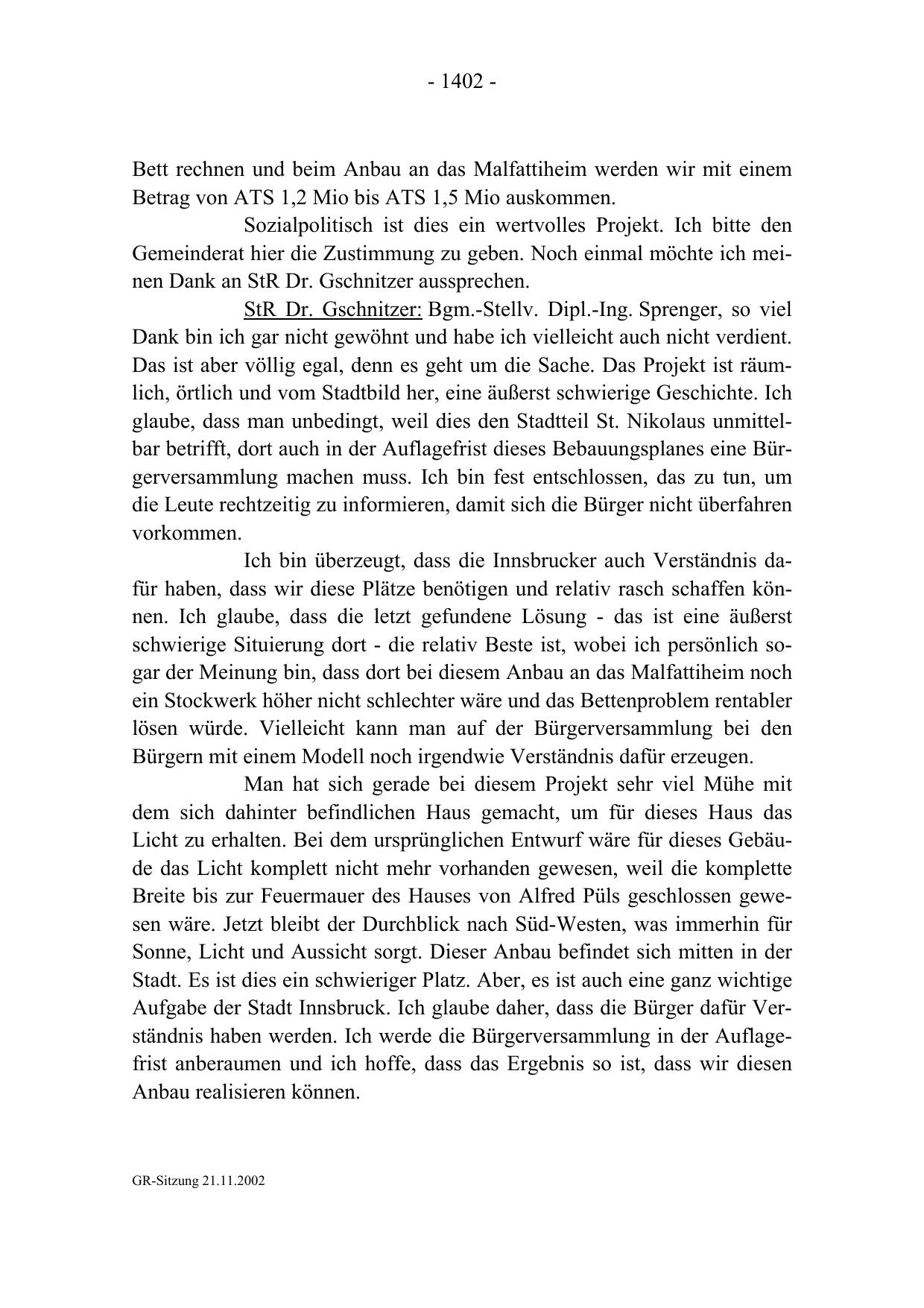 Gemeinderat hier die Zustimmung zu geben. Noch einmal möchte ich meinen Dank an StR Dr. Gschnitzer aussprechen.