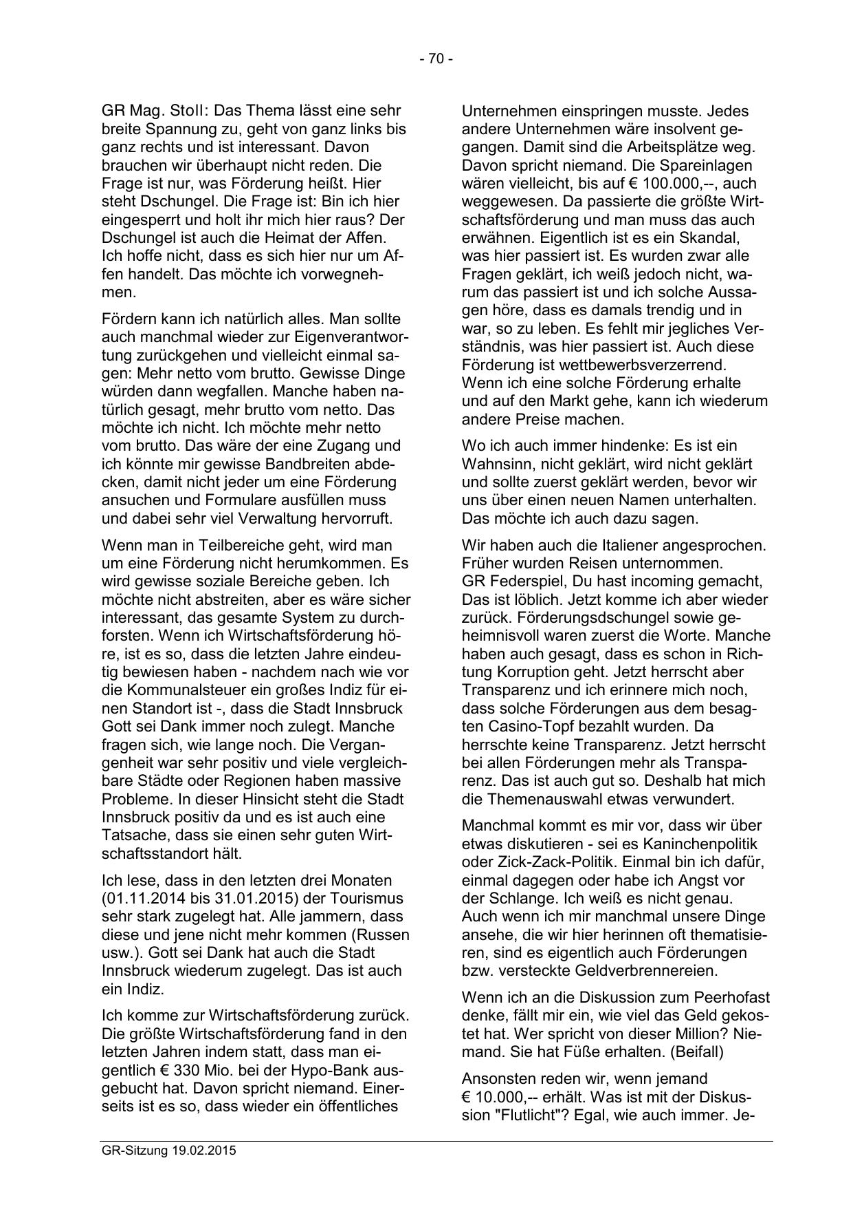 die Kommunalsteuer ein großes Indiz für einen Standort ist -, dass die Stadt Innsbruck