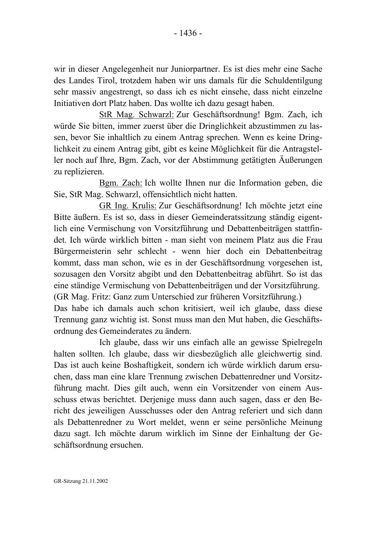 StR Mag. Schwarzl: Zur Geschäftsordnung! Bgm. Zach, ich