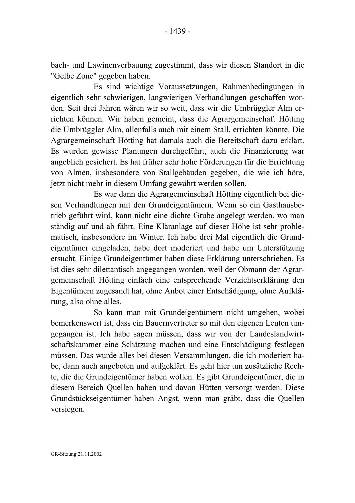Es war dann die Agrargemeinschaft Hötting eigentlich bei diesen Verhandlungen mit den Grundeigentümern. Wenn so ein Gasthausbetrieb geführt wird, kann nicht eine dichte Grube angelegt werden, wo man