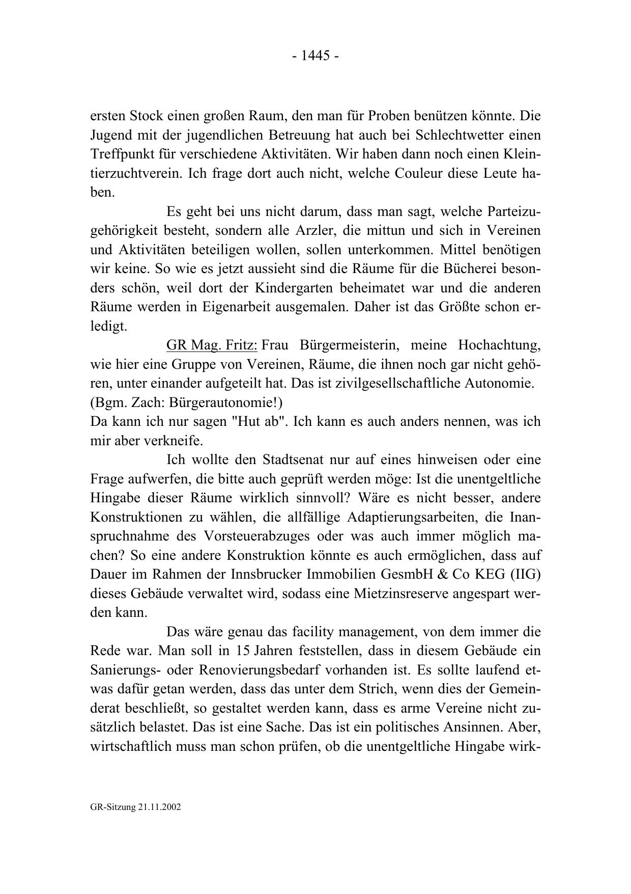 Sanierungs- oder Renovierungsbedarf vorhanden ist. Es sollte laufend etwas dafür getan werden, dass das unter dem Strich, wenn dies der Gemeinderat beschließt, so gestaltet werden kann, dass es arme Vereine nicht zusätzlich belastet. Das ist eine Sache. Das ist ein politisches Ansinnen. Aber,