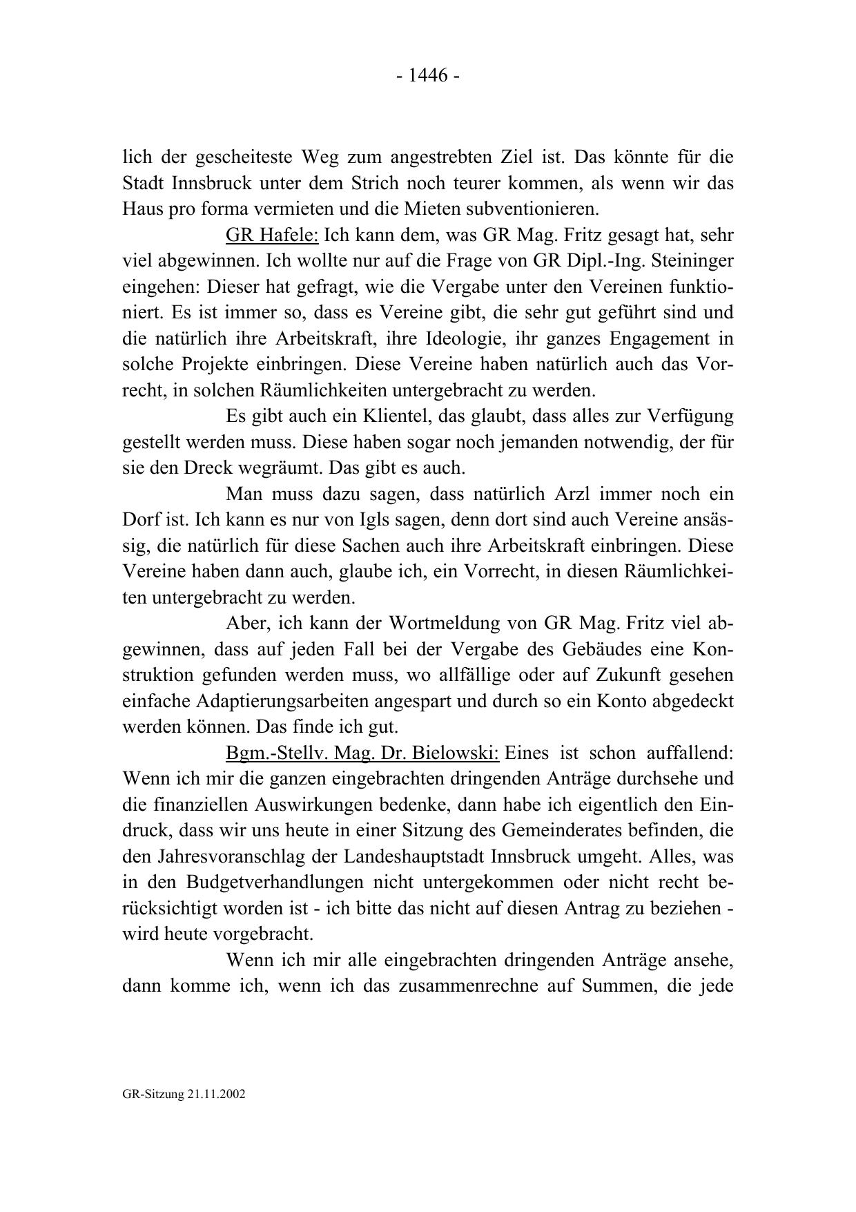 den Jahresvoranschlag der Landeshauptstadt Innsbruck umgeht. Alles, was