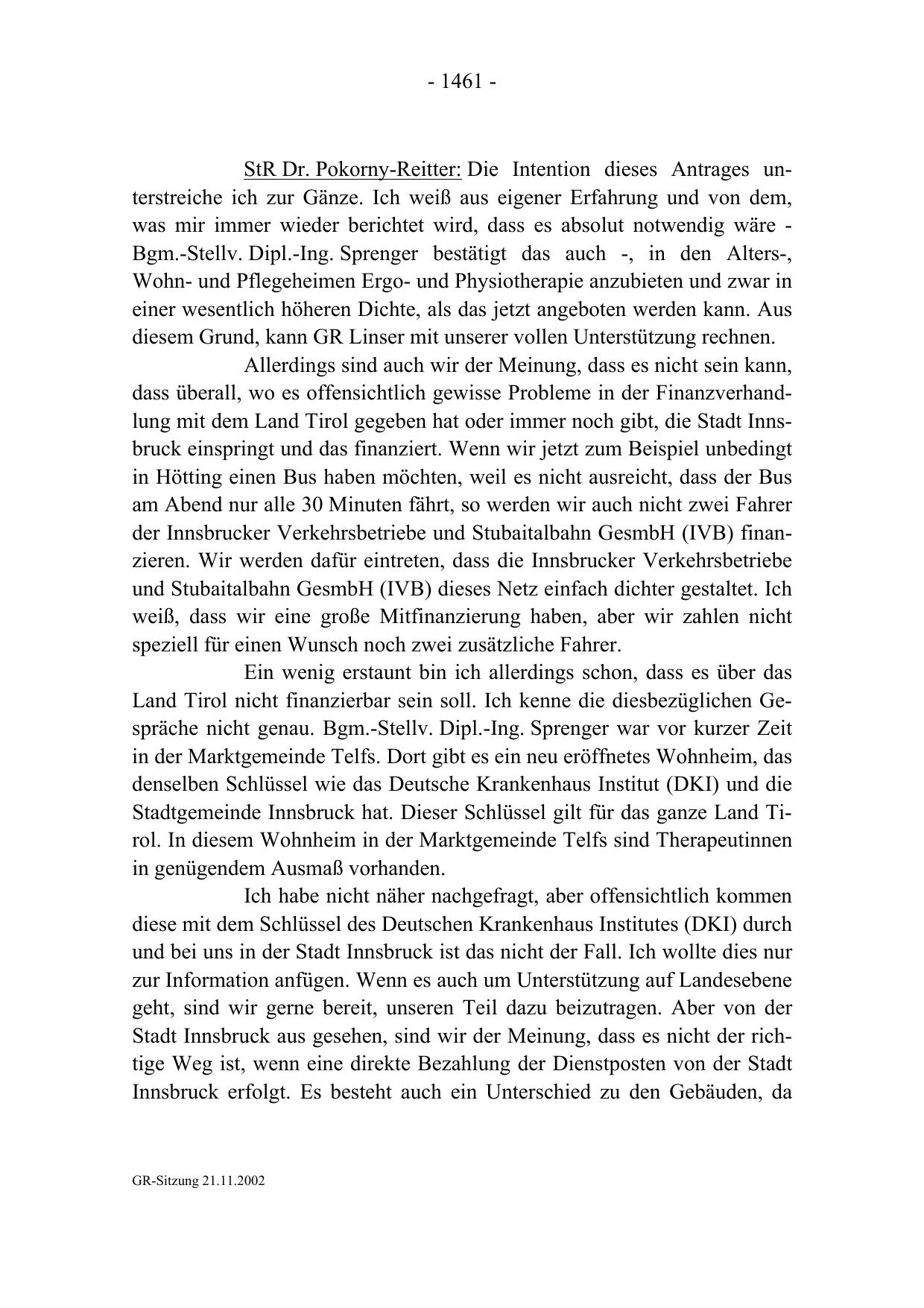 Land Tirol nicht finanzierbar sein soll. Ich kenne die diesbezüglichen Gespräche nicht genau. Bgm.-Stellv. Dipl.-Ing. Sprenger war vor kurzer Zeit