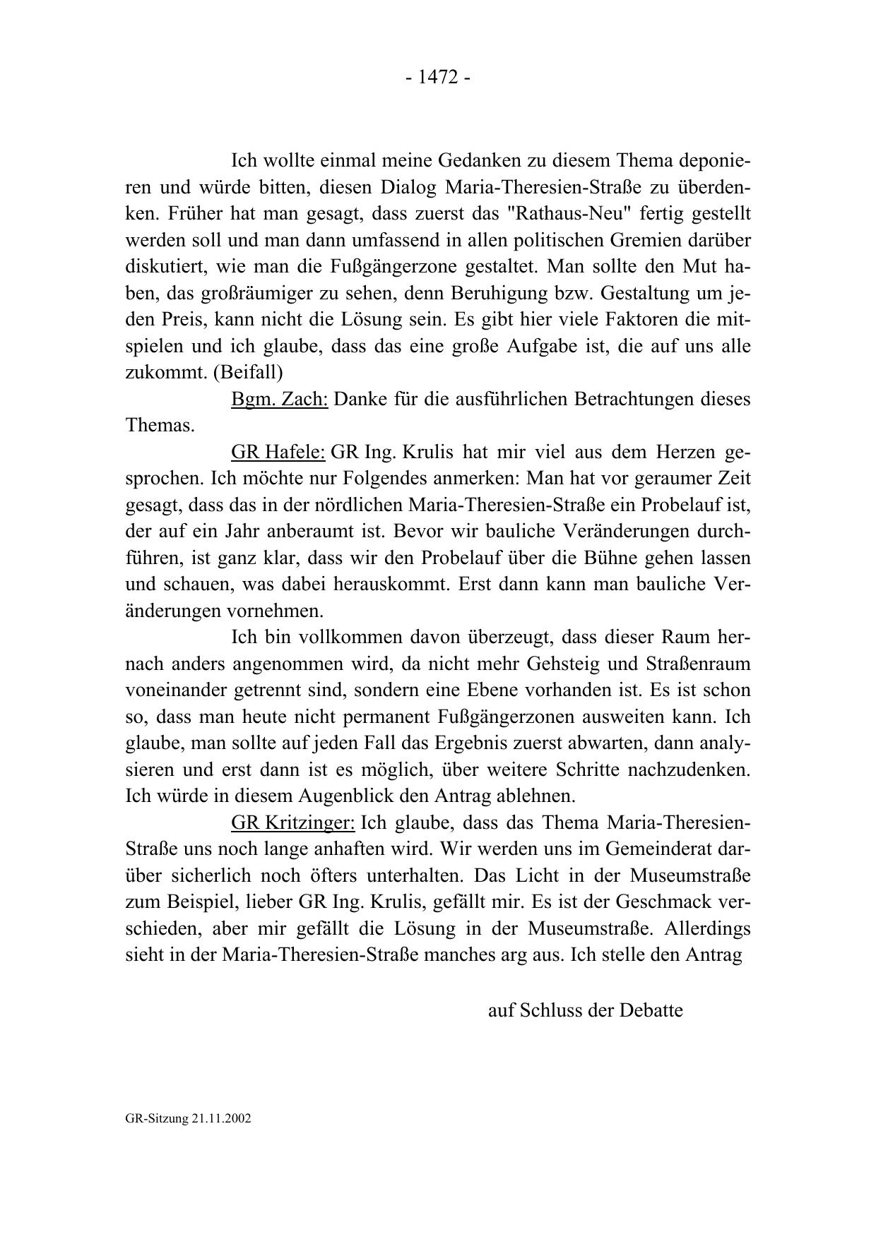 Ich wollte einmal meine Gedanken zu diesem Thema deponieren und würde bitten, diesen Dialog Maria-Theresien-Straße zu überdenken. Früher hat man gesagt, dass zuerst das "Rathaus-Neu" fertig gestellt