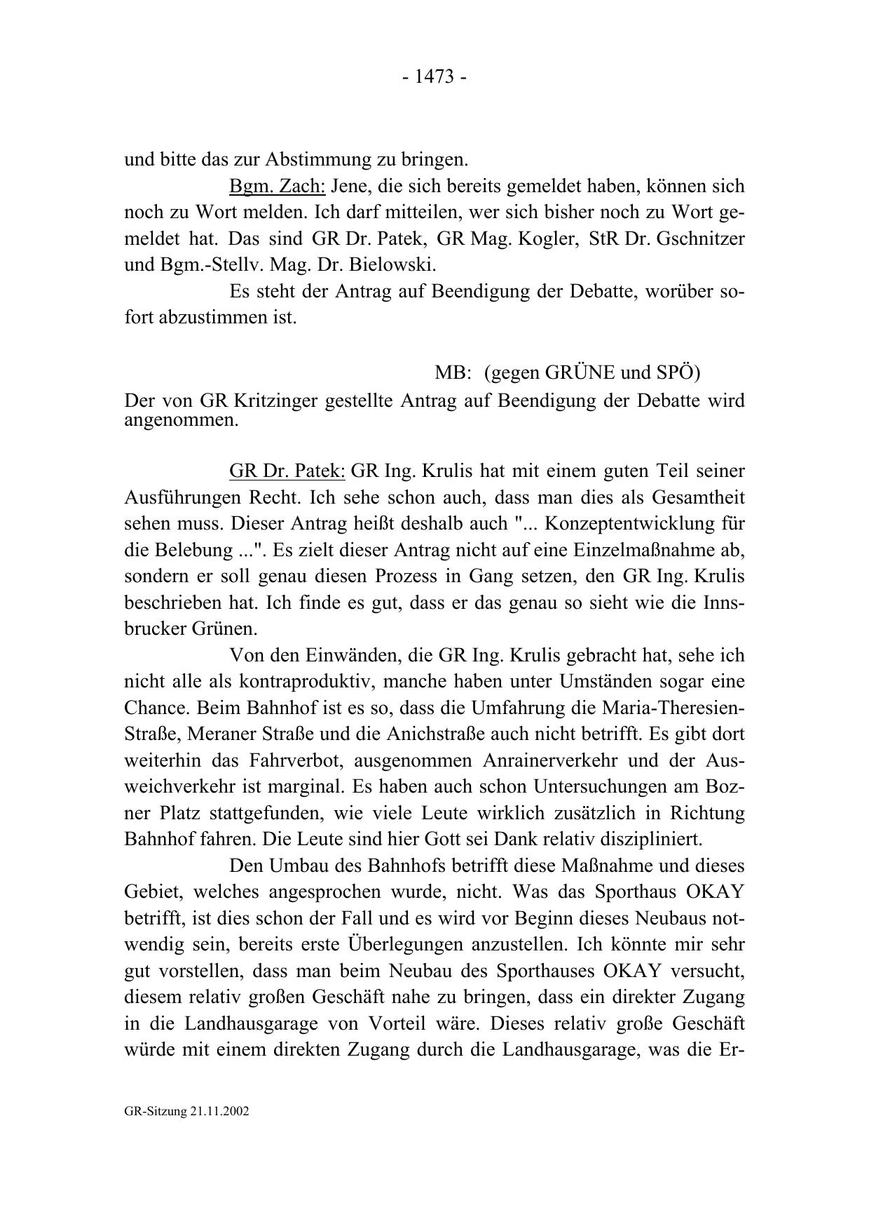 GR Dr. Patek: GR Ing. Krulis hat mit einem guten Teil seiner