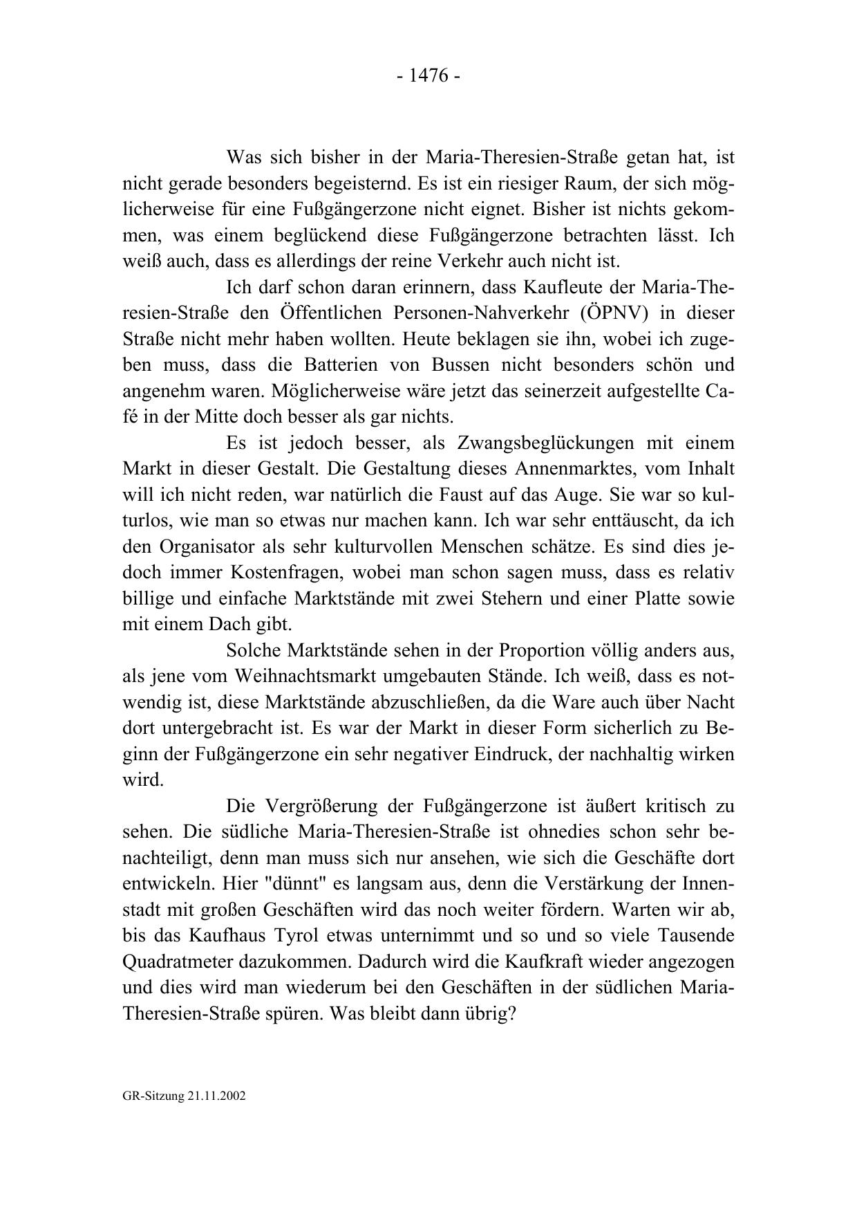sehen. Die südliche Maria-Theresien-Straße ist ohnedies schon sehr benachteiligt, denn man muss sich nur ansehen, wie sich die Geschäfte dort