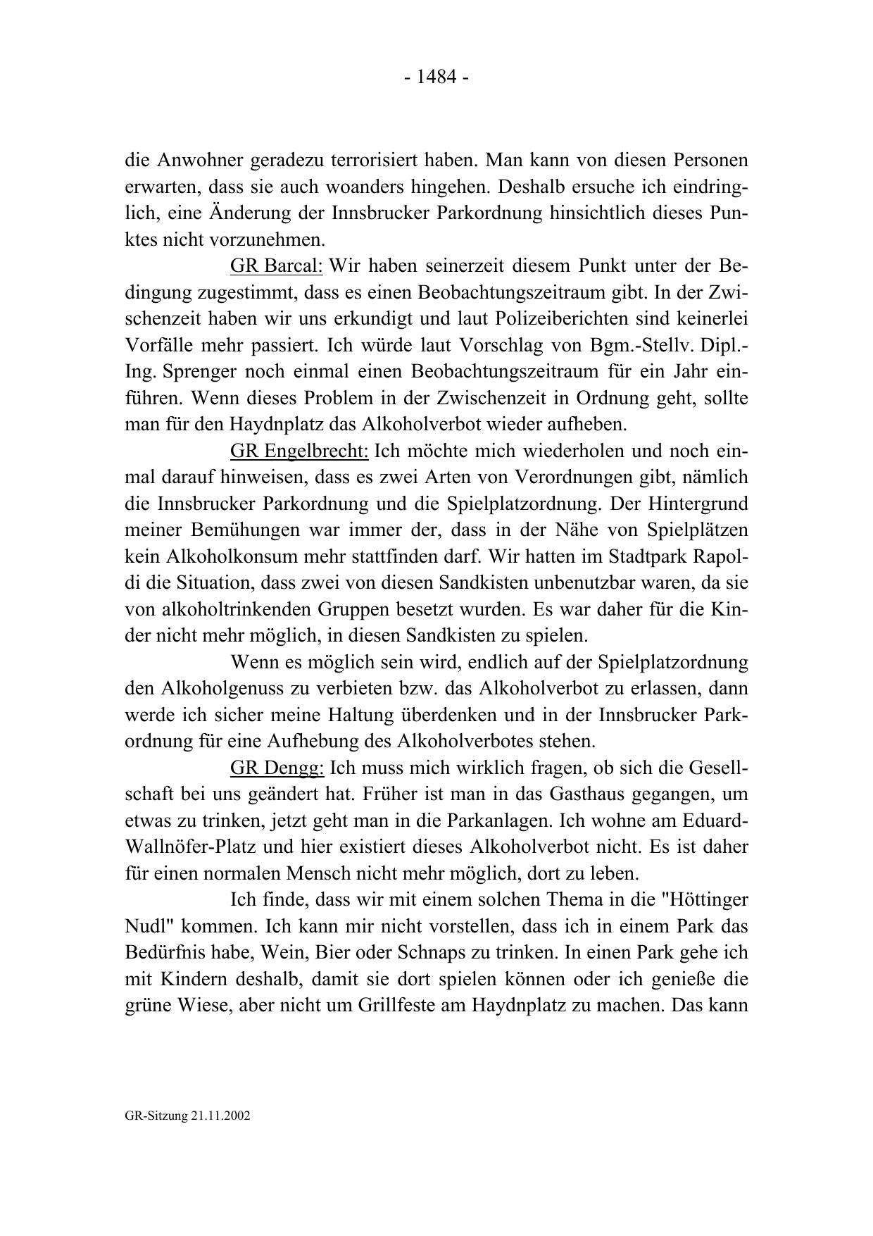 erwarten, dass sie auch woanders hingehen. Deshalb ersuche ich eindringlich, eine Änderung der Innsbrucker Parkordnung hinsichtlich dieses Punktes nicht vorzunehmen.