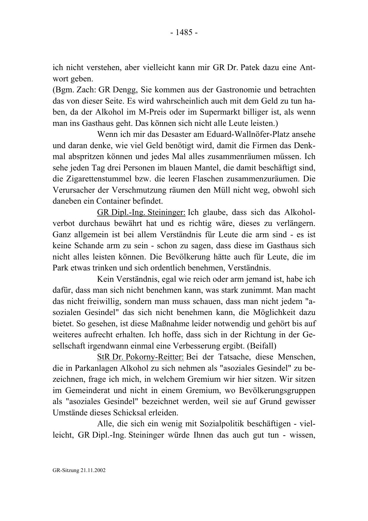 GR Dipl.-Ing. Steininger: Ich glaube, dass sich das Alkoholverbot durchaus bewährt hat und es richtig wäre, dieses zu verlängern.
