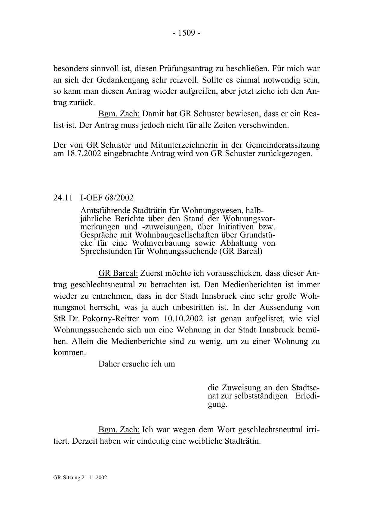 Bgm. Zach: Ich war wegen dem Wort geschlechtsneutral irritiert. Derzeit haben wir eindeutig eine weibliche Stadträtin.