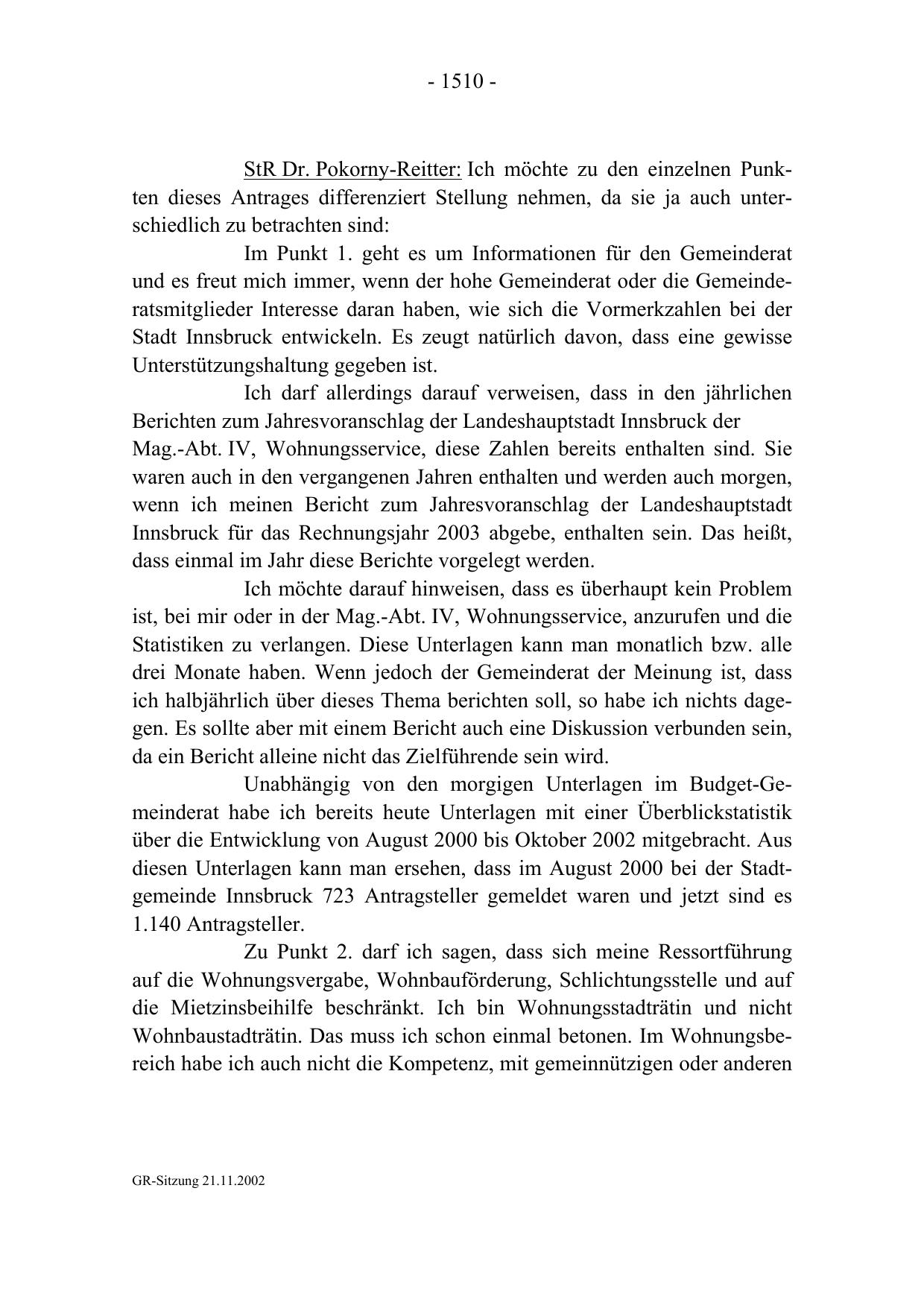 diesen Unterlagen kann man ersehen, dass im August 2000 bei der Stadtgemeinde Innsbruck 723 Antragsteller gemeldet waren und jetzt sind es