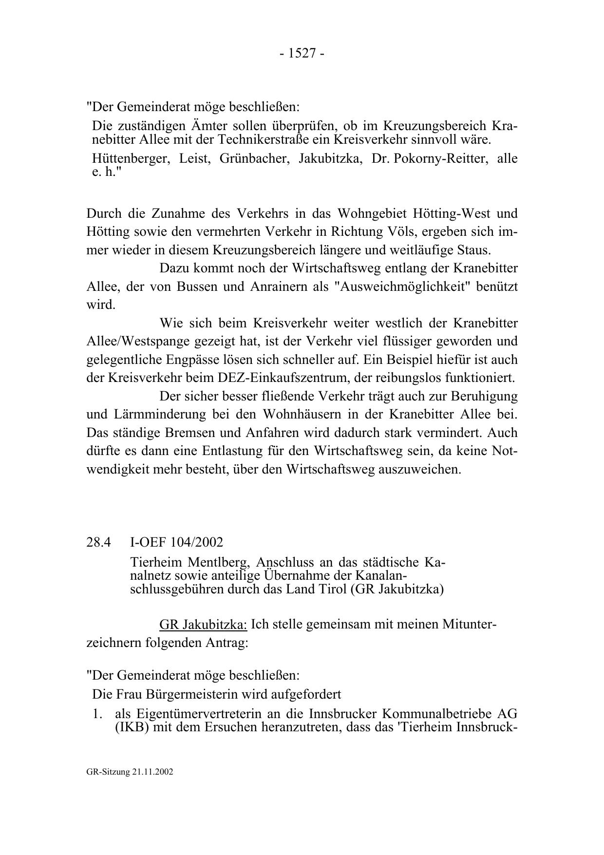 (IKB) mit dem Ersuchen heranzutreten, dass das "Tierheim InnsbruckGR-Sitzung 21.11.2002