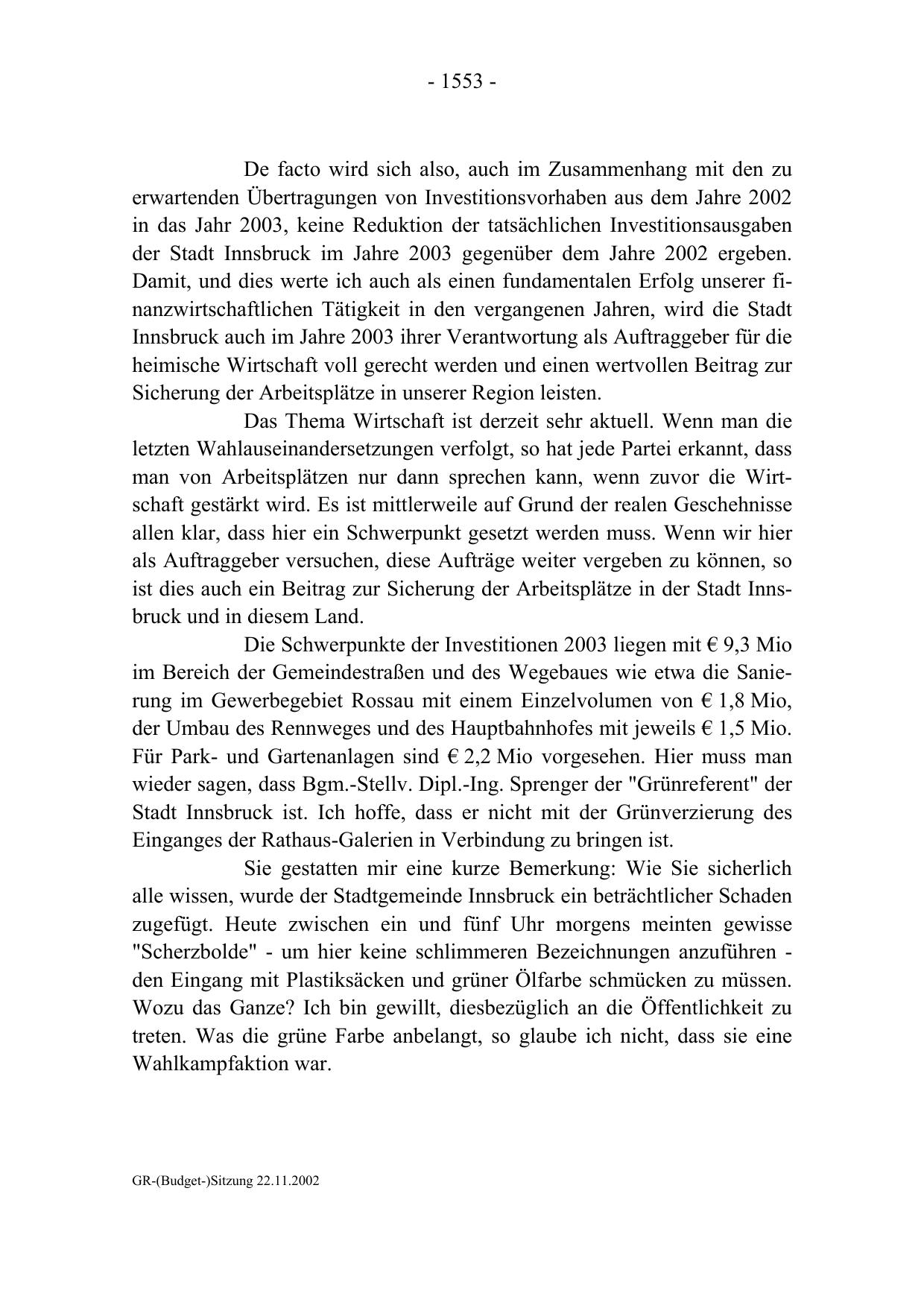 in das Jahr 2003, keine Reduktion der tatsächlichen Investitionsausgaben