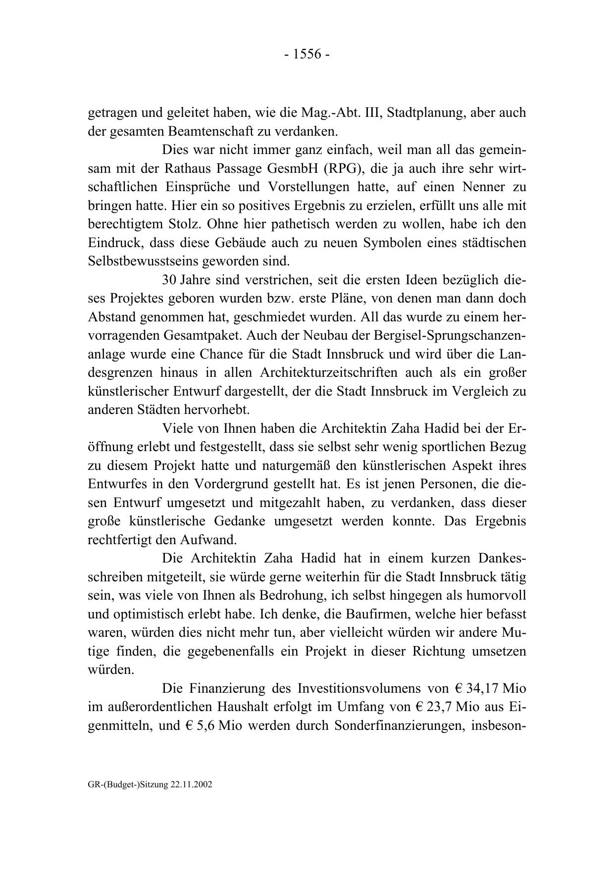 Abstand genommen hat, geschmiedet wurden. All das wurde zu einem hervorragenden Gesamtpaket. Auch der Neubau der Bergisel-Sprungschanzenanlage wurde eine Chance für die Stadt Innsbruck und wird über die Landesgrenzen hinaus in allen Architekturzeitschriften auch als ein großer