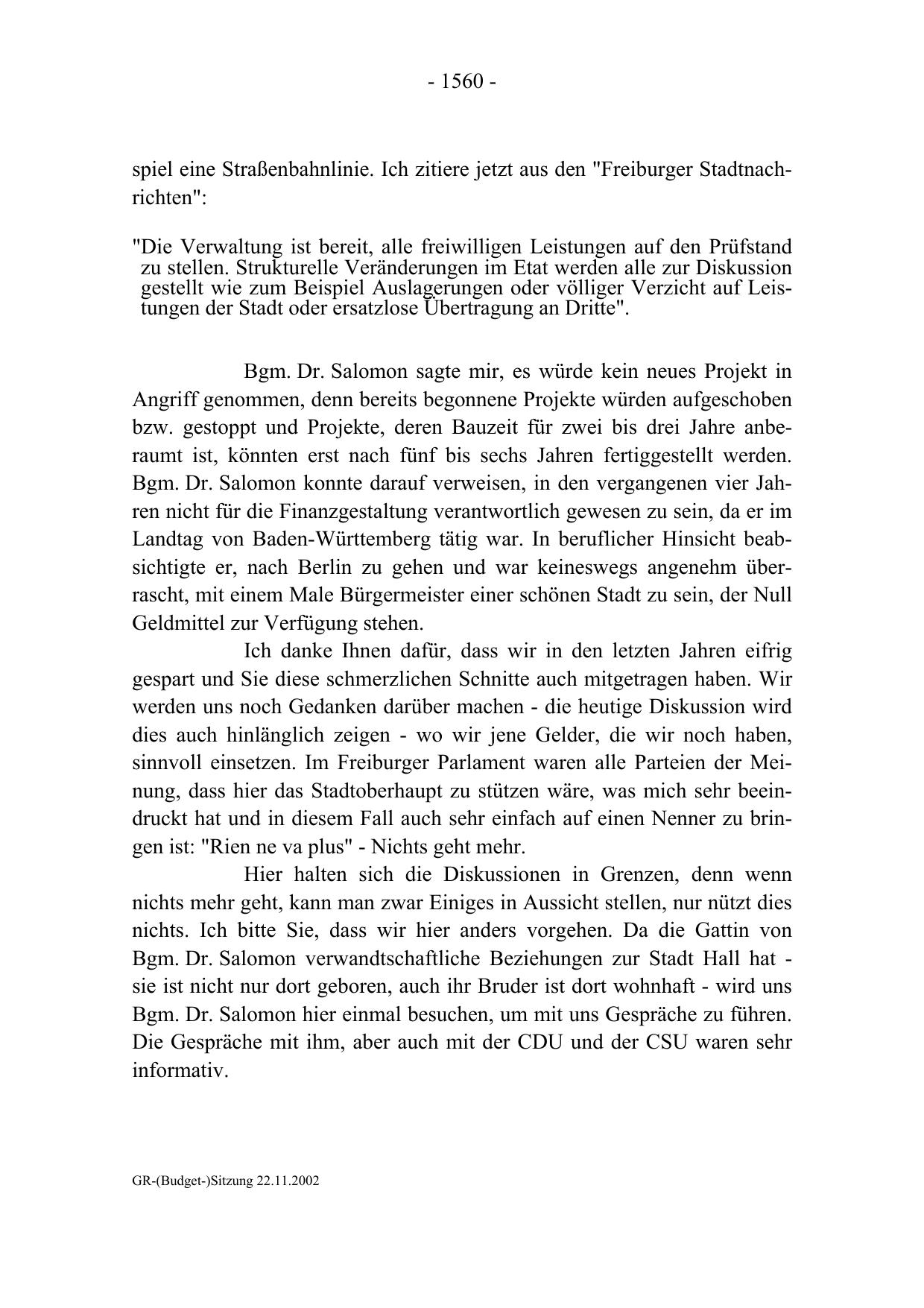 Bgm. Dr. Salomon sagte mir, es würde kein neues Projekt in