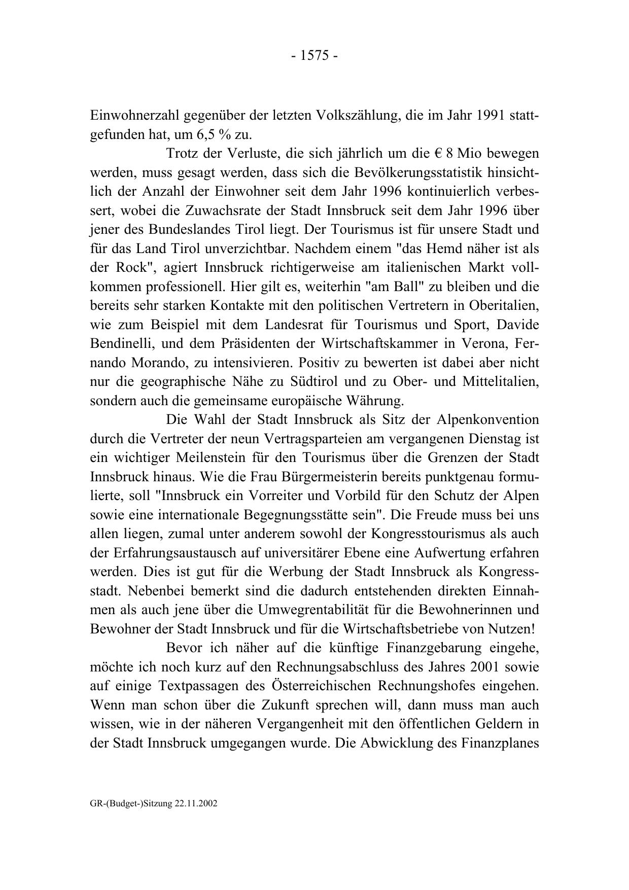 GR-(Budget-)Sitzung 22.11.2002