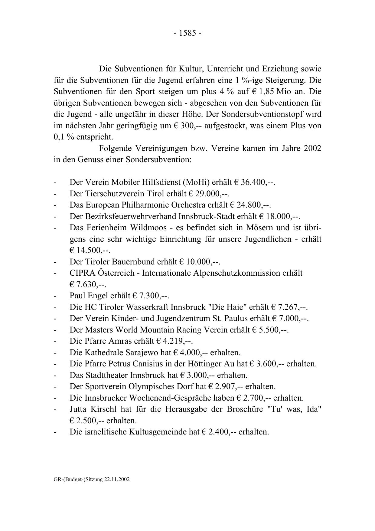 Folgende Vereinigungen bzw. Vereine kamen im Jahre 2002