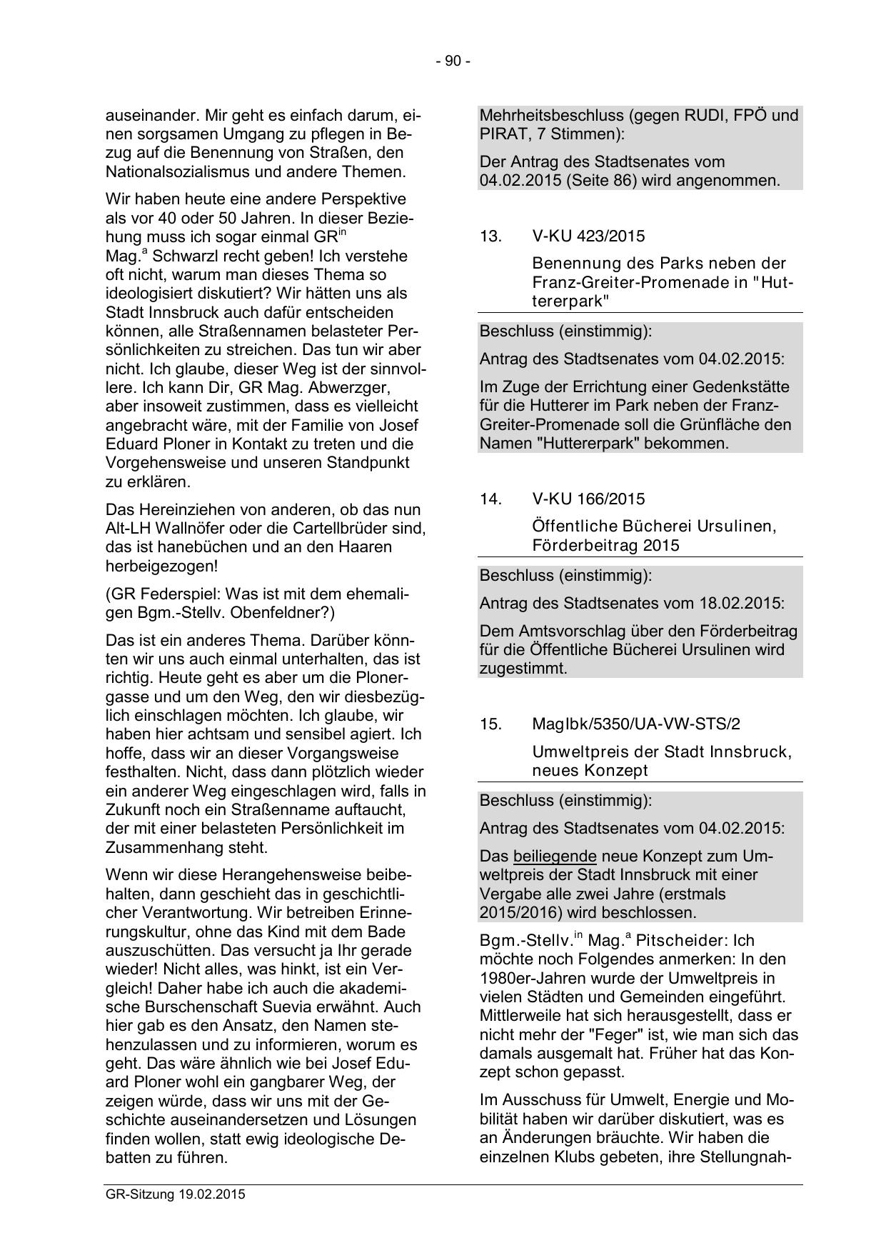 Mehrheitsbeschluss (gegen RUDI, FPÖ und