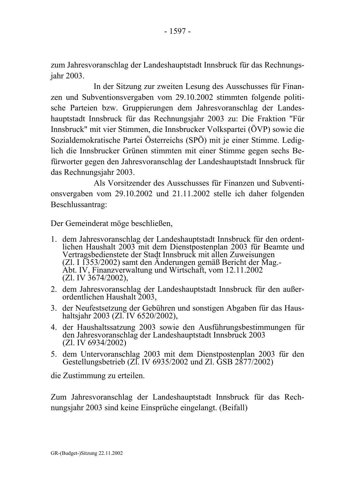 GR-(Budget-)Sitzung 22.11.2002