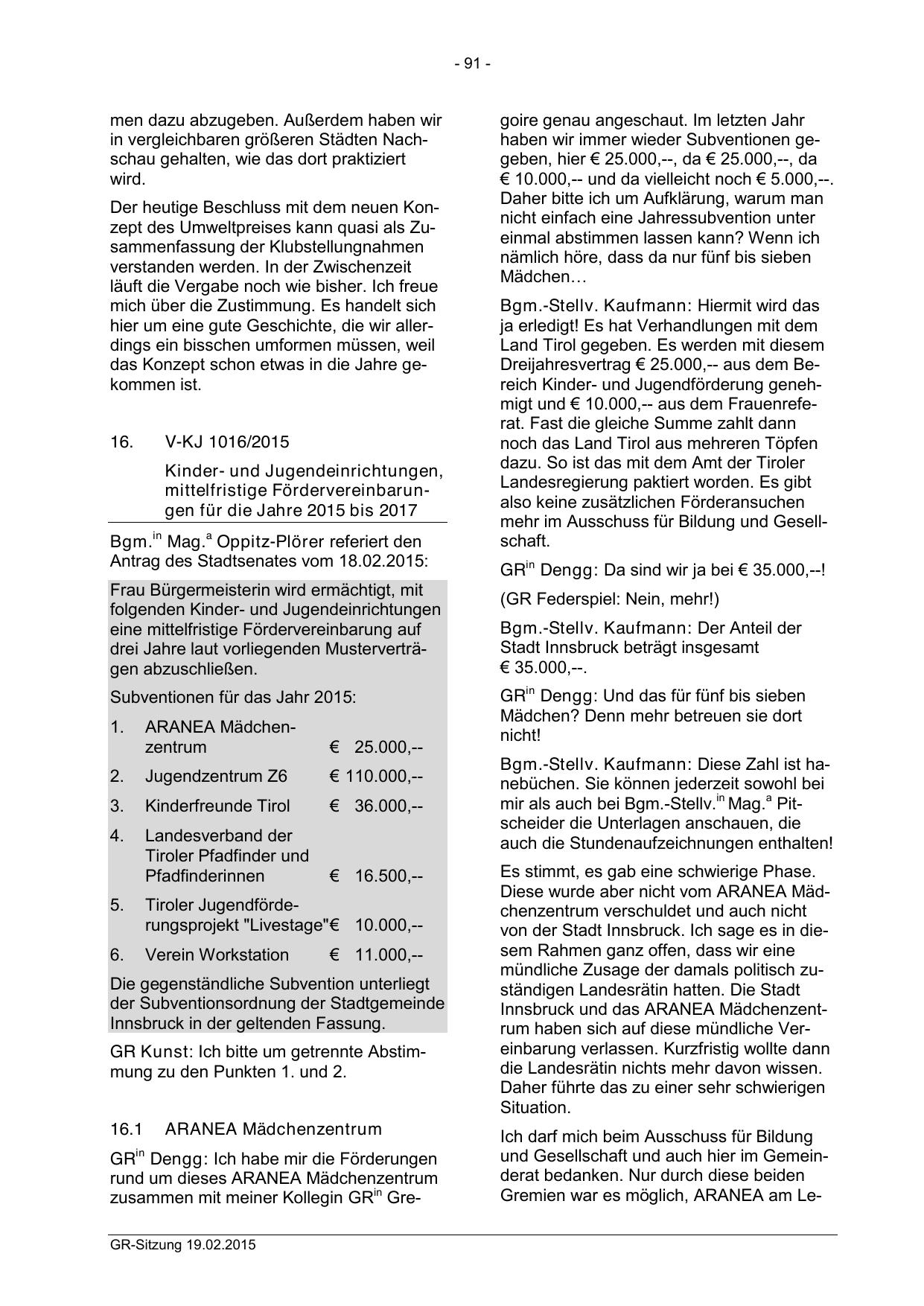 Dreijahresvertrag € 25.000,-- aus dem Bereich Kinder- und Jugendförderung genehmigt und € 10.000,-- aus dem Frauenreferat. Fast die gleiche Summe zahlt dann