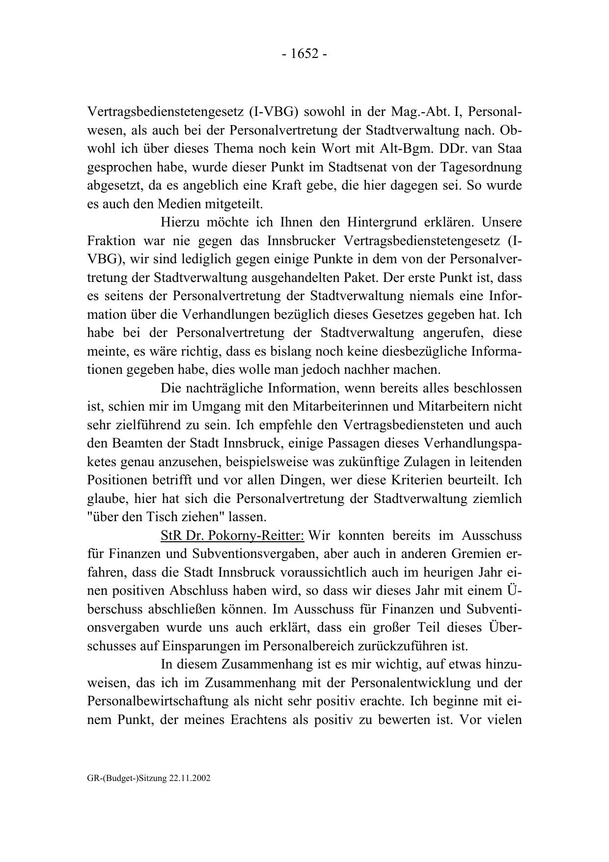 GR-(Budget-)Sitzung 22.11.2002