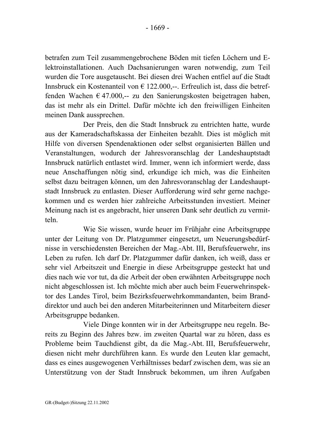 Innsbruck ein Kostenanteil von € 122.000,--. Erfreulich ist, dass die betreffenden Wachen € 47.000,-- zu den Sanierungskosten beigetragen haben,