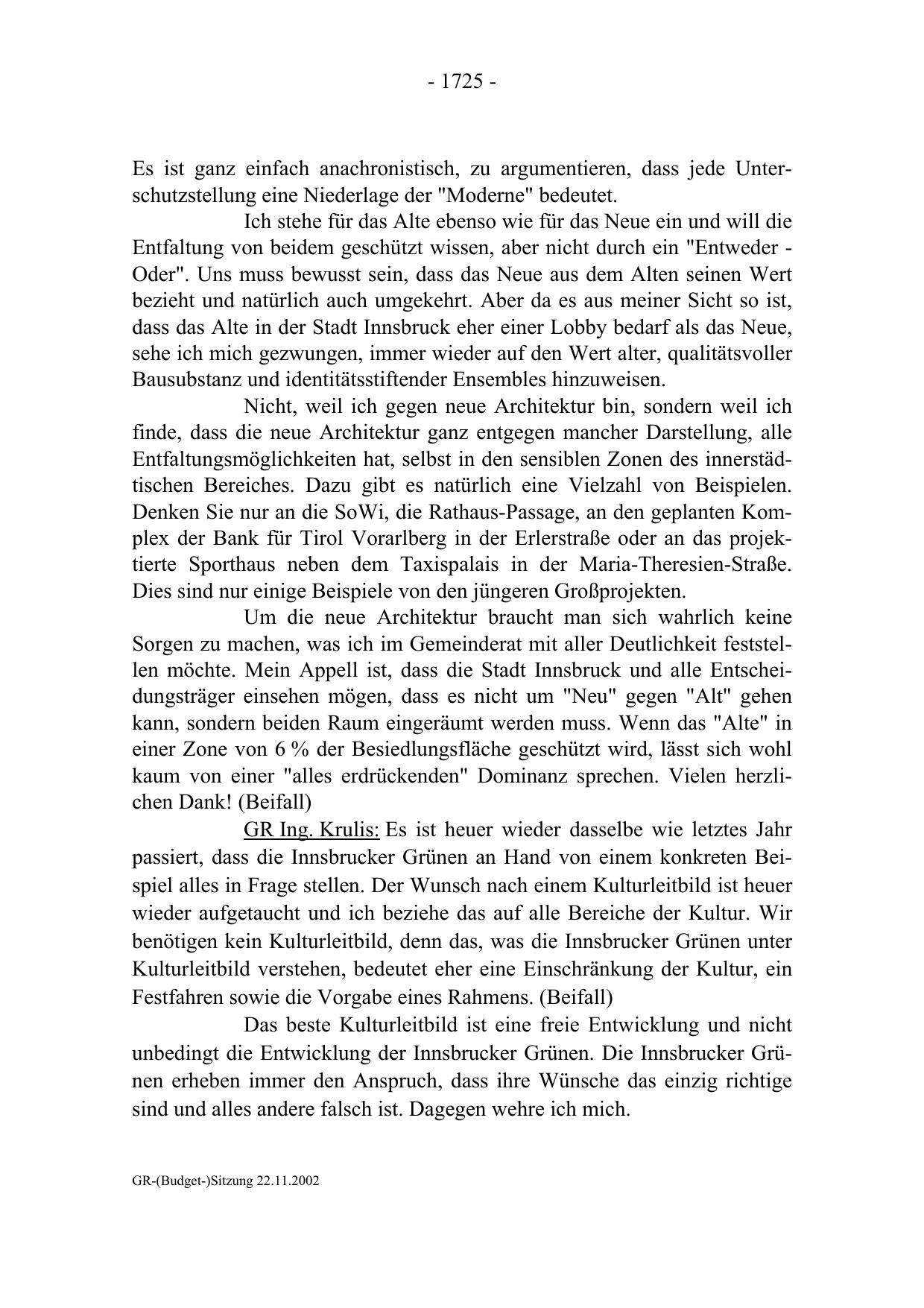 unbedingt die Entwicklung der Innsbrucker Grünen. Die Innsbrucker Grünen erheben immer den Anspruch, dass ihre Wünsche das einzig richtige