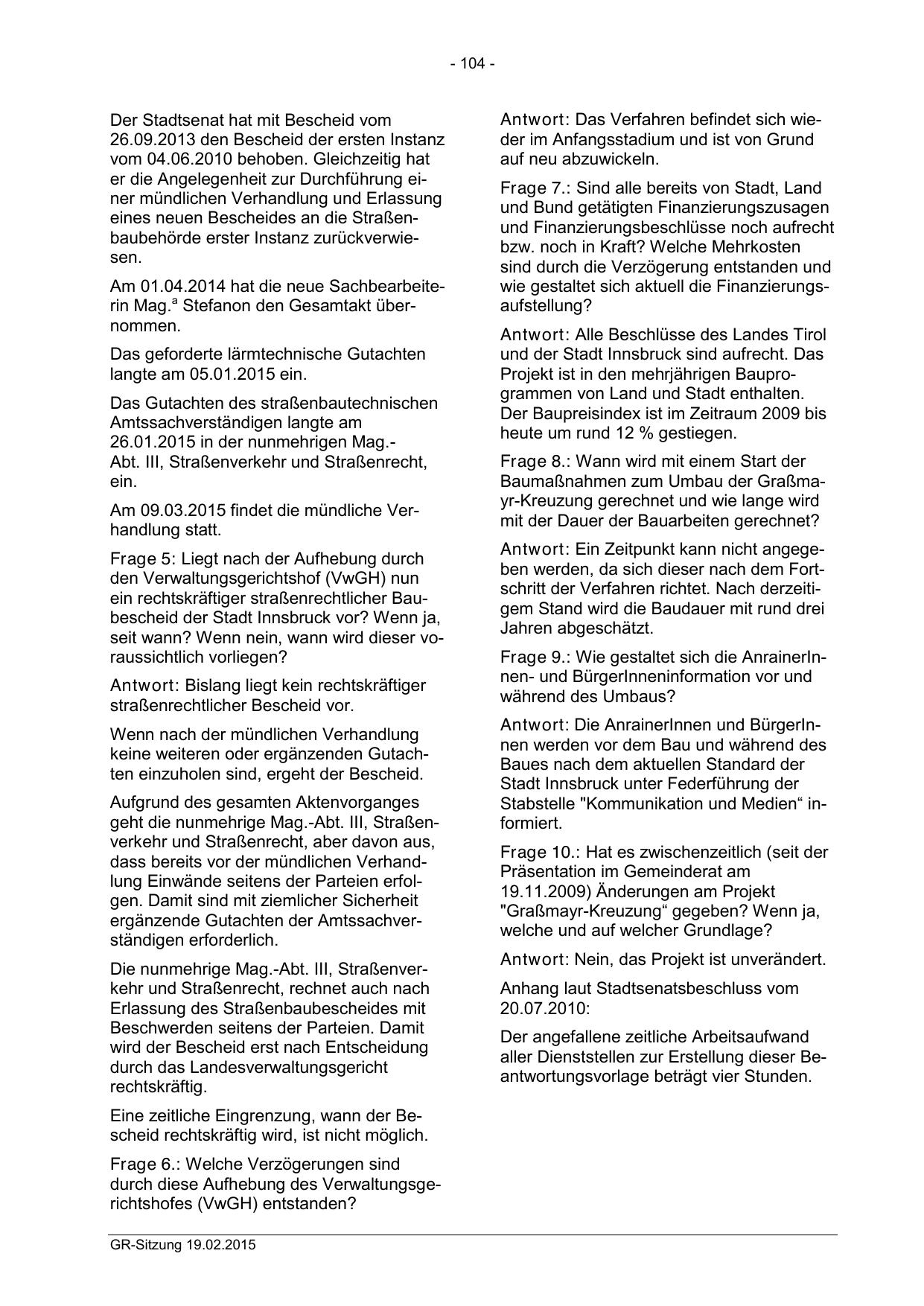 ein rechtskräftiger straßenrechtlicher Baubescheid der Stadt Innsbruck vor? Wenn ja,