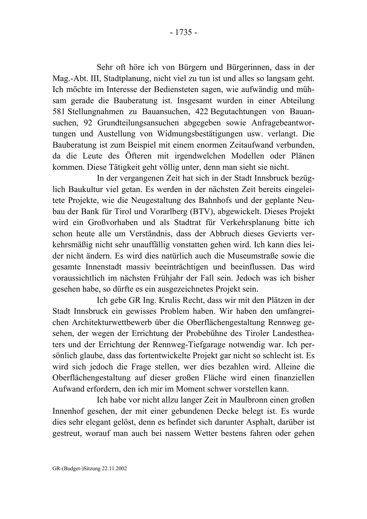 GR-(Budget-)Sitzung 22.11.2002