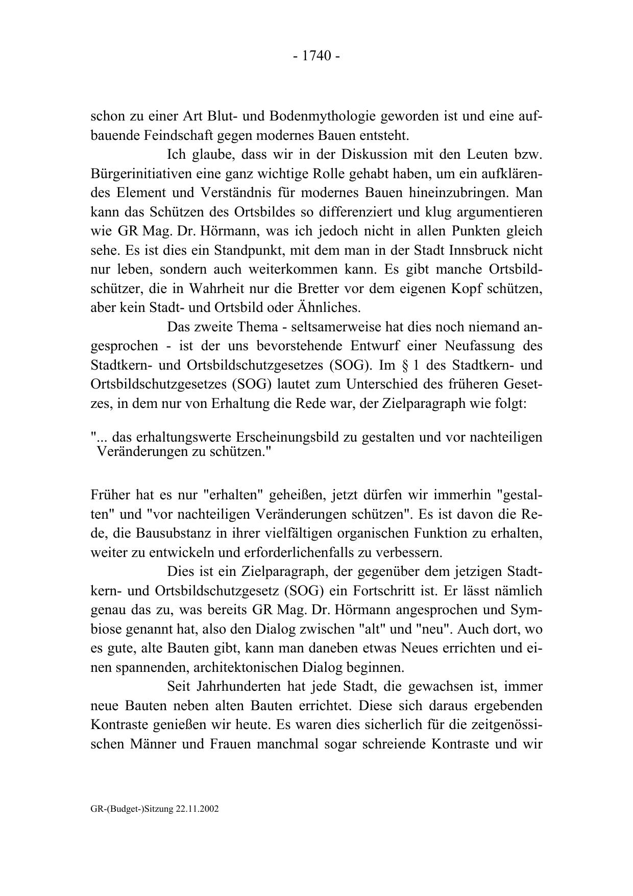 sehe. Es ist dies ein Standpunkt, mit dem man in der Stadt Innsbruck nicht