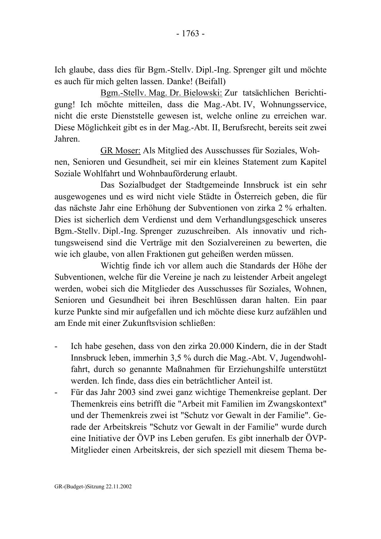 Bgm.-Stellv. Dipl.-Ing. Sprenger zuzuschreiben. Als innovativ und richtungsweisend sind die Verträge mit den Sozialvereinen zu bewerten, die
