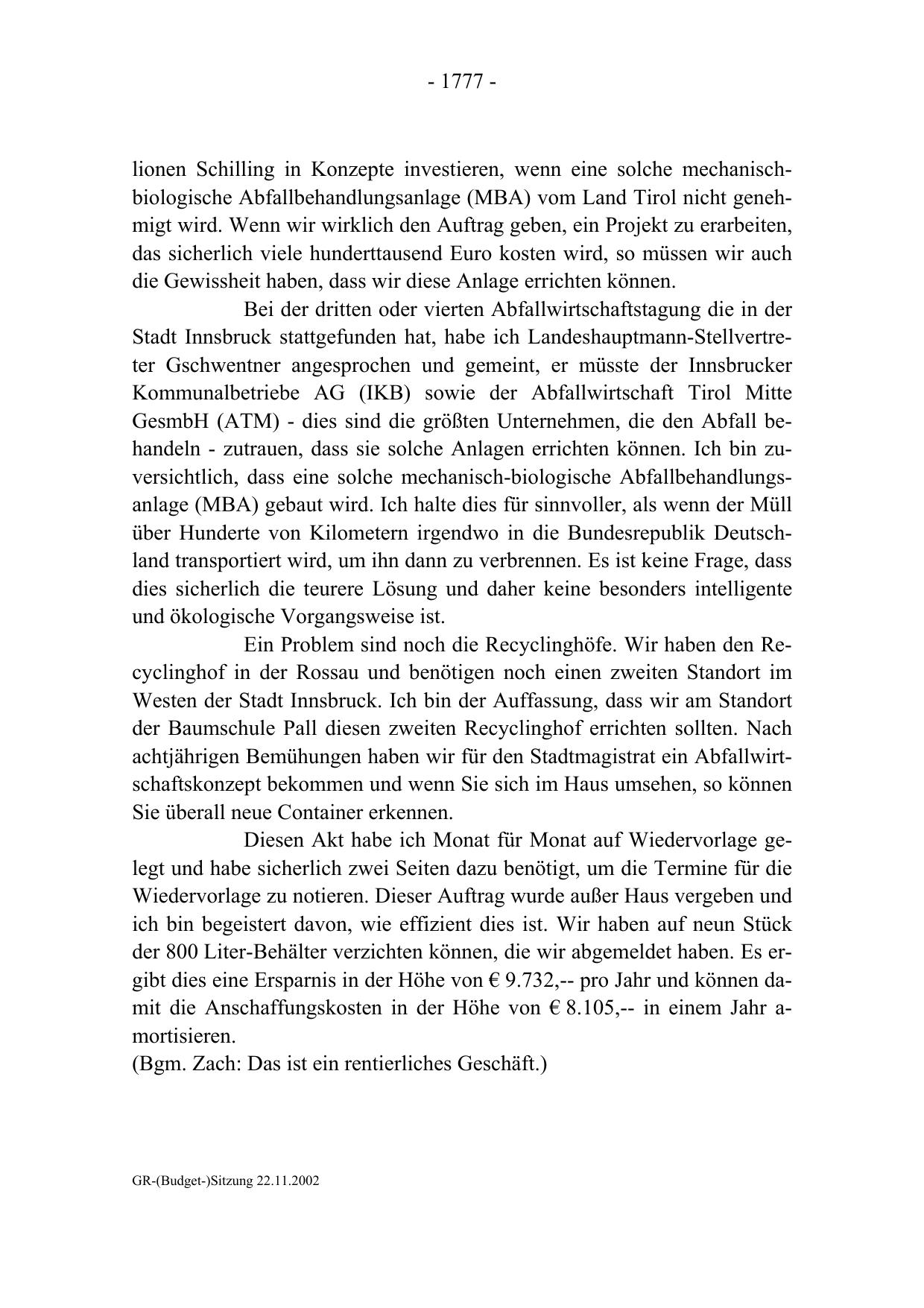 GR-(Budget-)Sitzung 22.11.2002