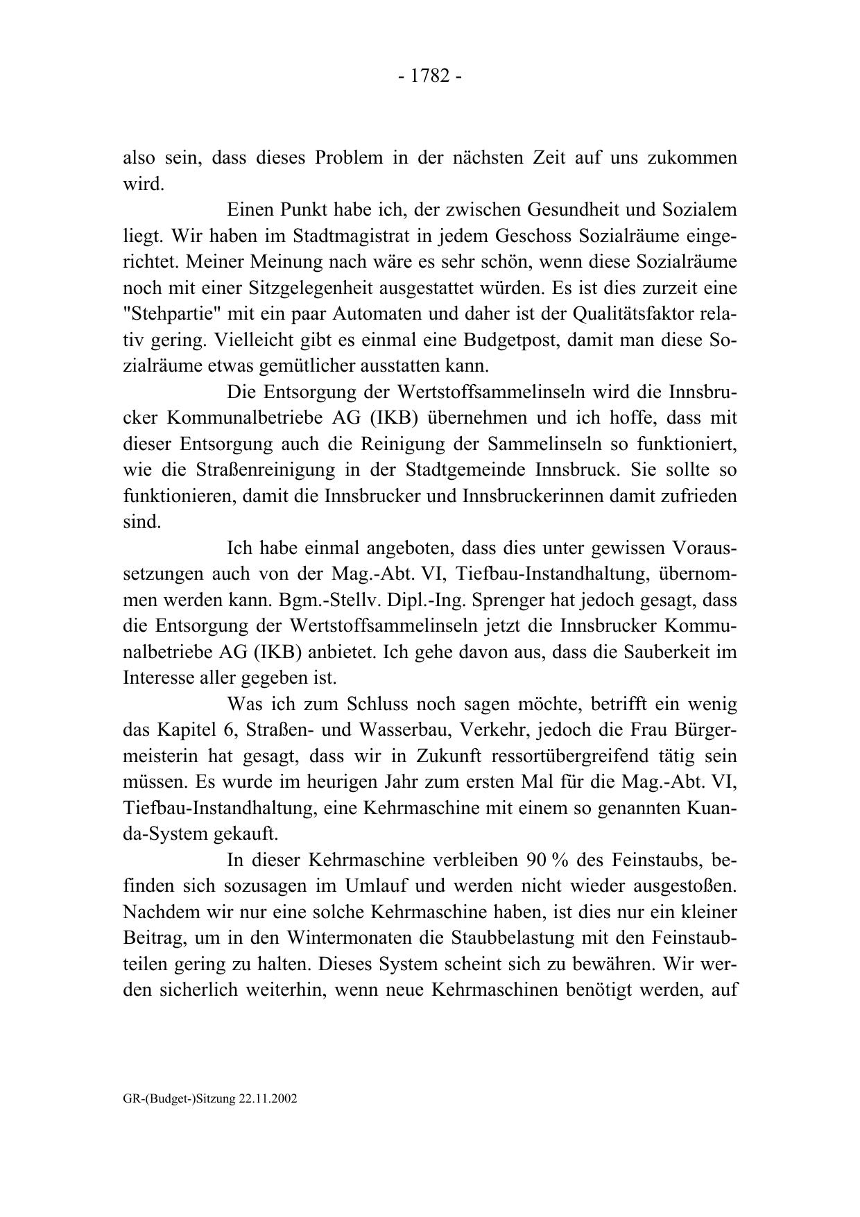 die Entsorgung der Wertstoffsammelinseln jetzt die Innsbrucker Kommunalbetriebe AG (IKB) anbietet. Ich gehe davon aus, dass die Sauberkeit im