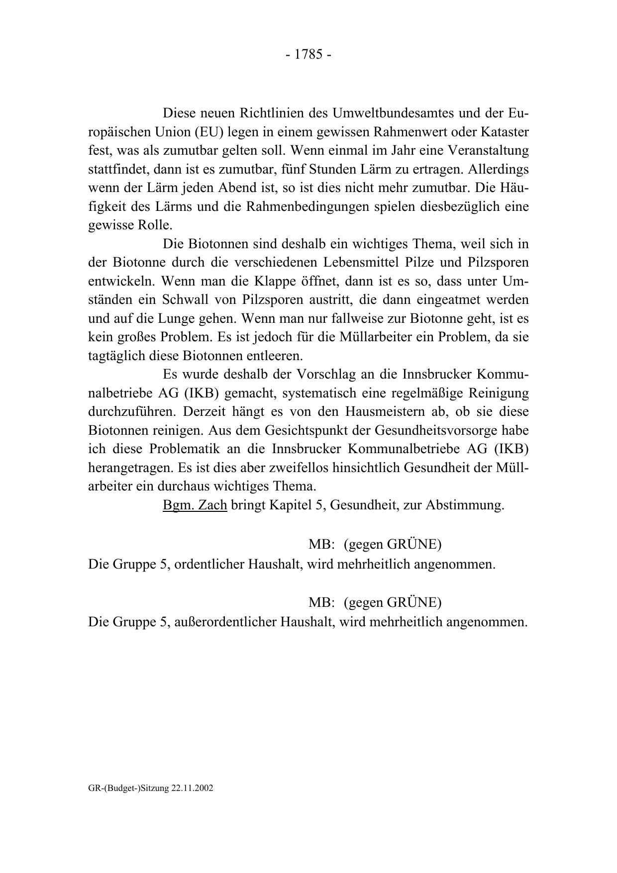 Bgm. Zach bringt Kapitel 5, Gesundheit, zur Abstimmung.