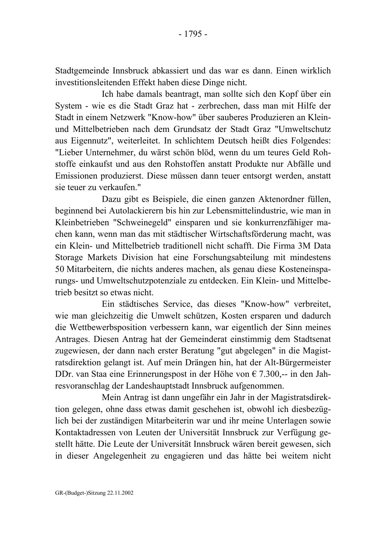 DDr. van Staa eine Erinnerungspost in der Höhe von € 7.300,-- in den Jahresvoranschlag der Landeshauptstadt Innsbruck aufgenommen.
