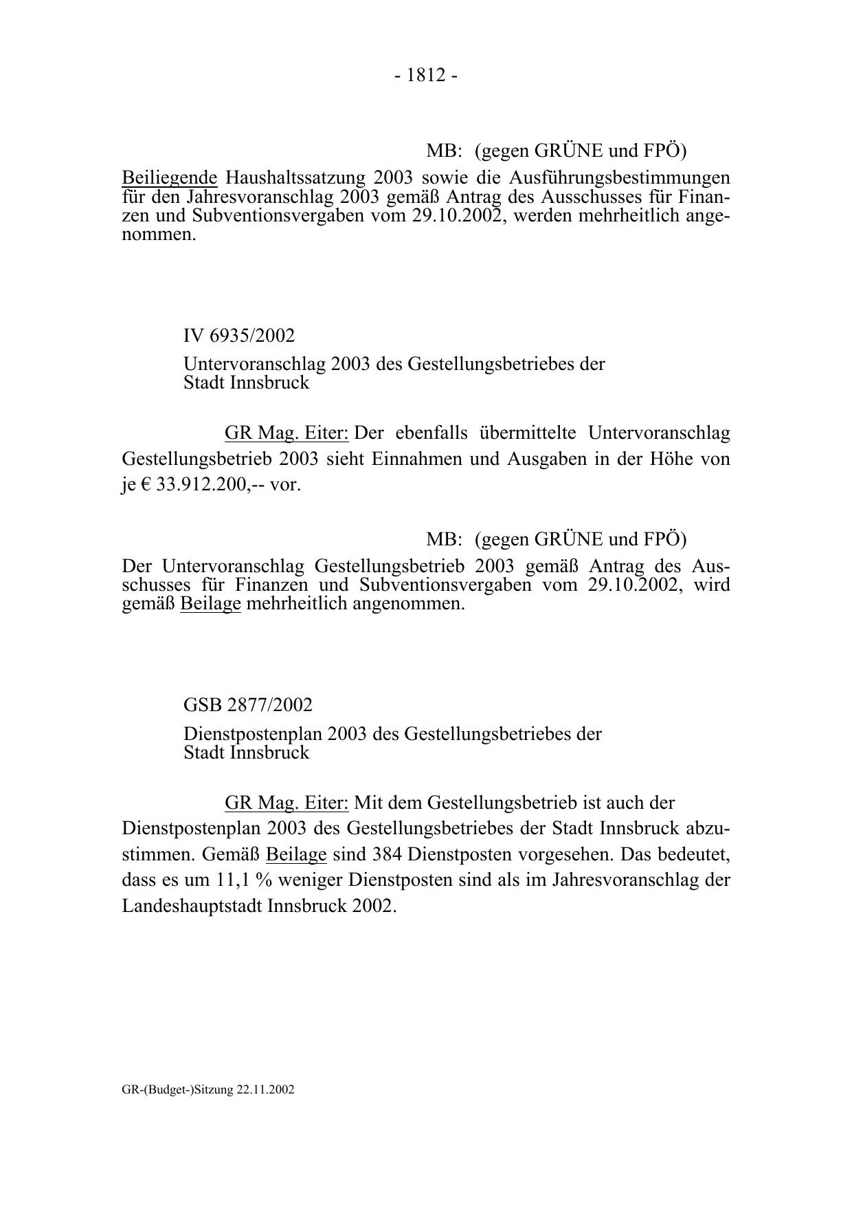 GR-(Budget-)Sitzung 22.11.2002