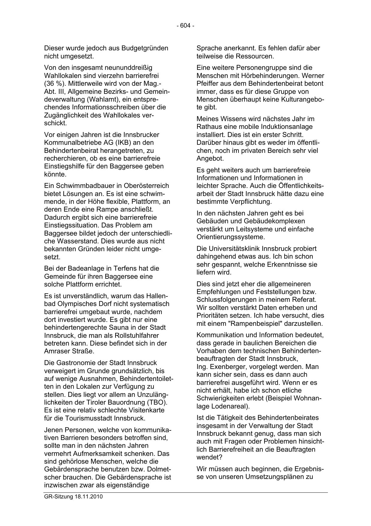 Vorhaben dem technischen Behindertenbeauftragten der Stadt Innsbruck,