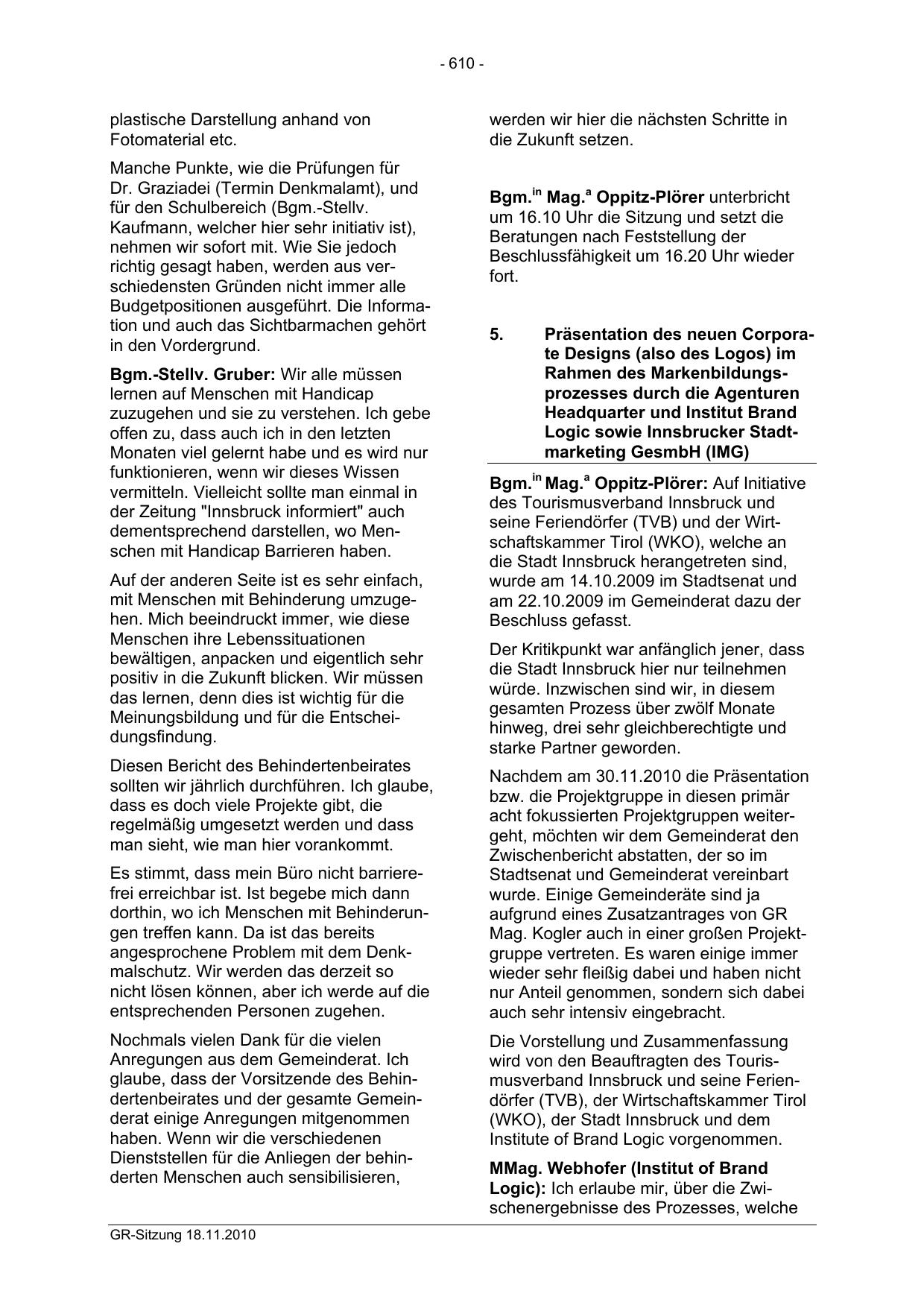 Bgm.in Mag.a Oppitz-Plörer unterbricht