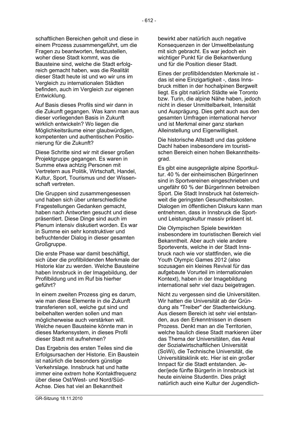 entnehmen, dass in Innsbruck die Sportund Leistungskultur massiv präsent ist.