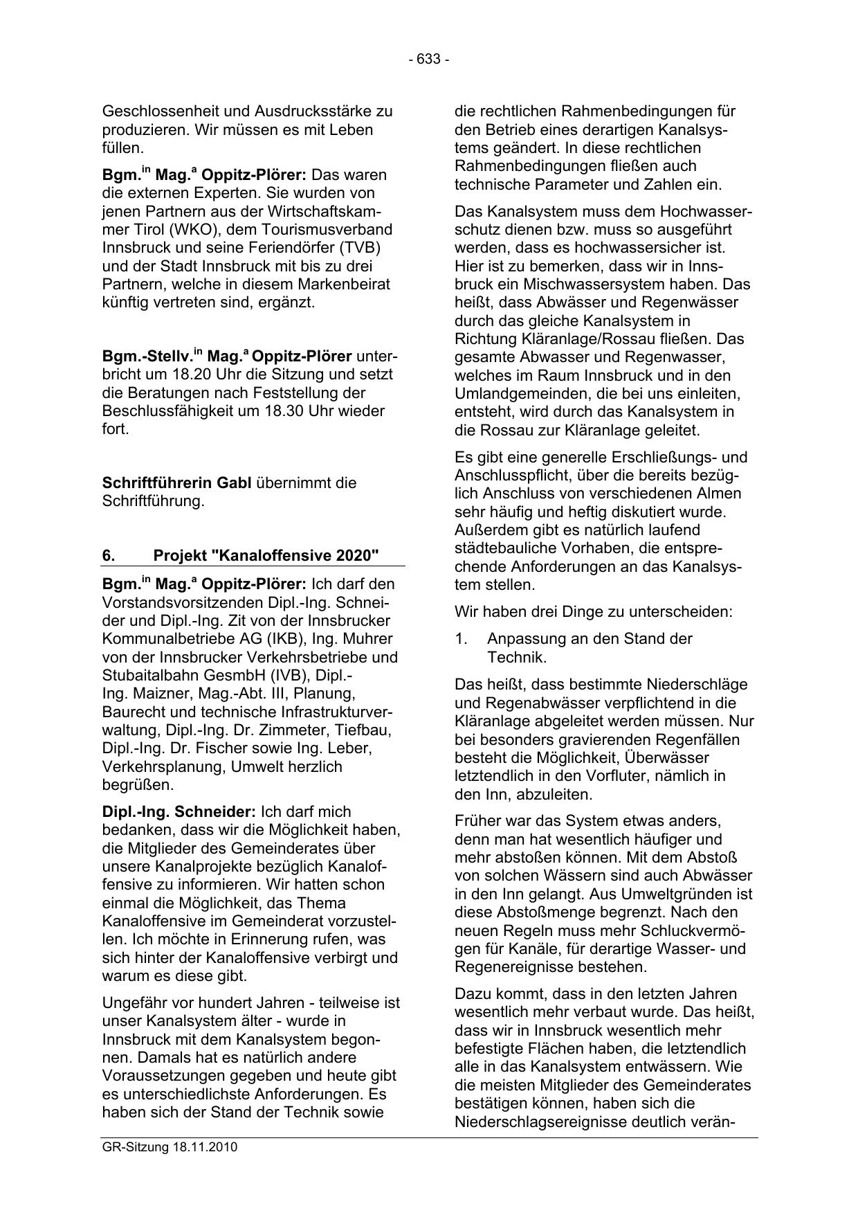 Innsbruck mit dem Kanalsystem begonnen. Damals hat es natürlich andere