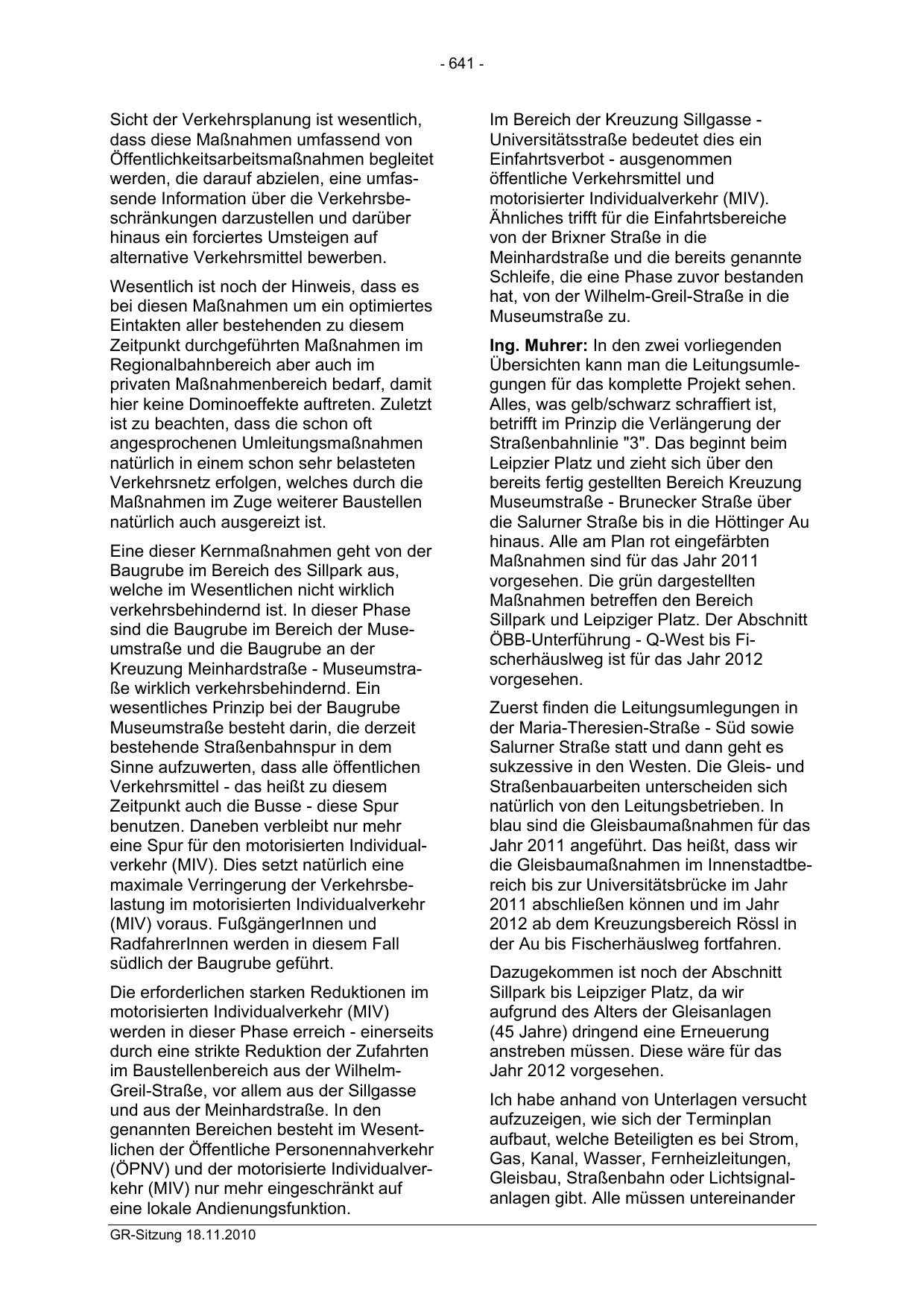 Im Bereich der Kreuzung Sillgasse Universitätsstraße bedeutet dies ein