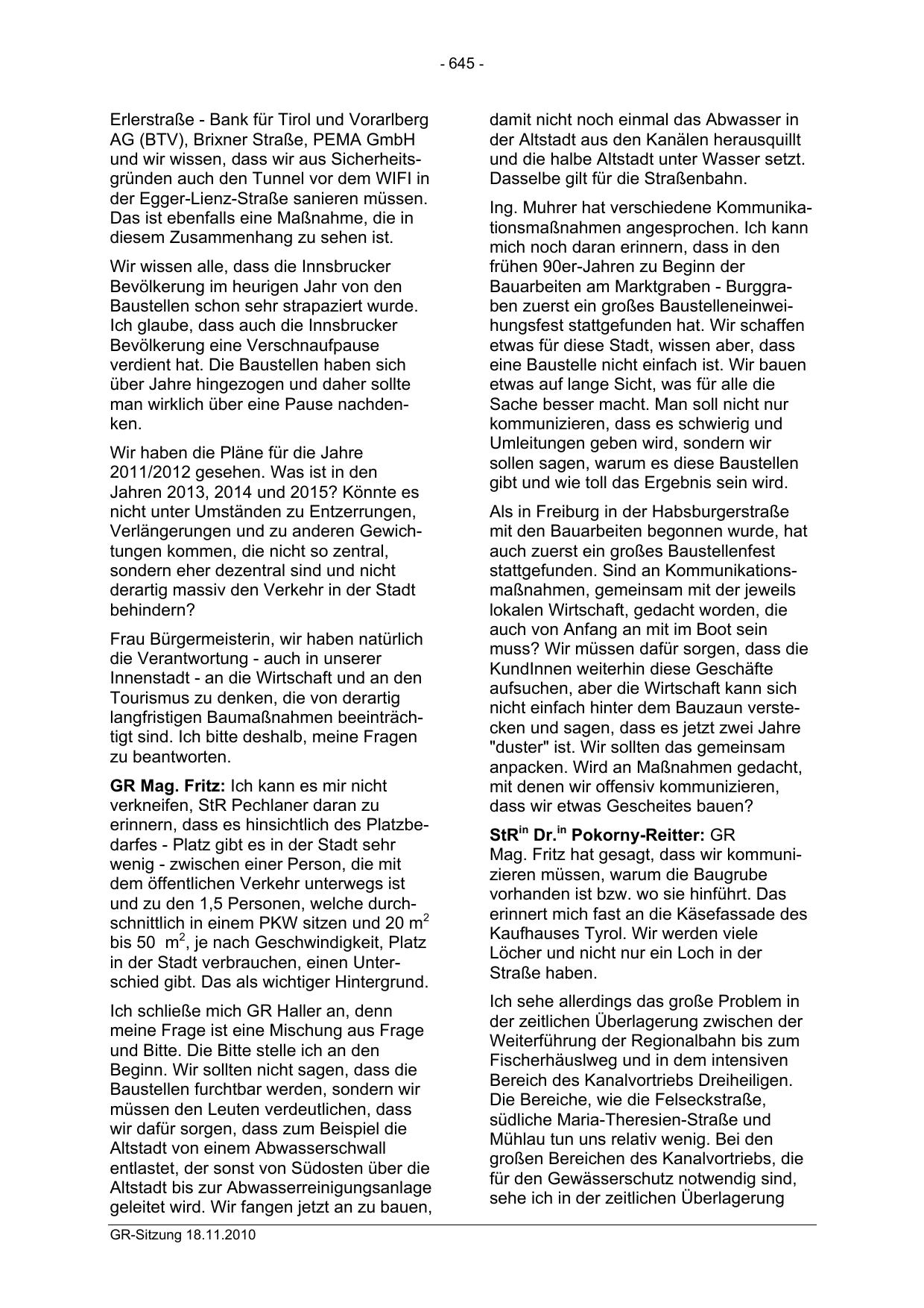 Mag. Fritz hat gesagt, dass wir kommunizieren müssen, warum die Baugrube